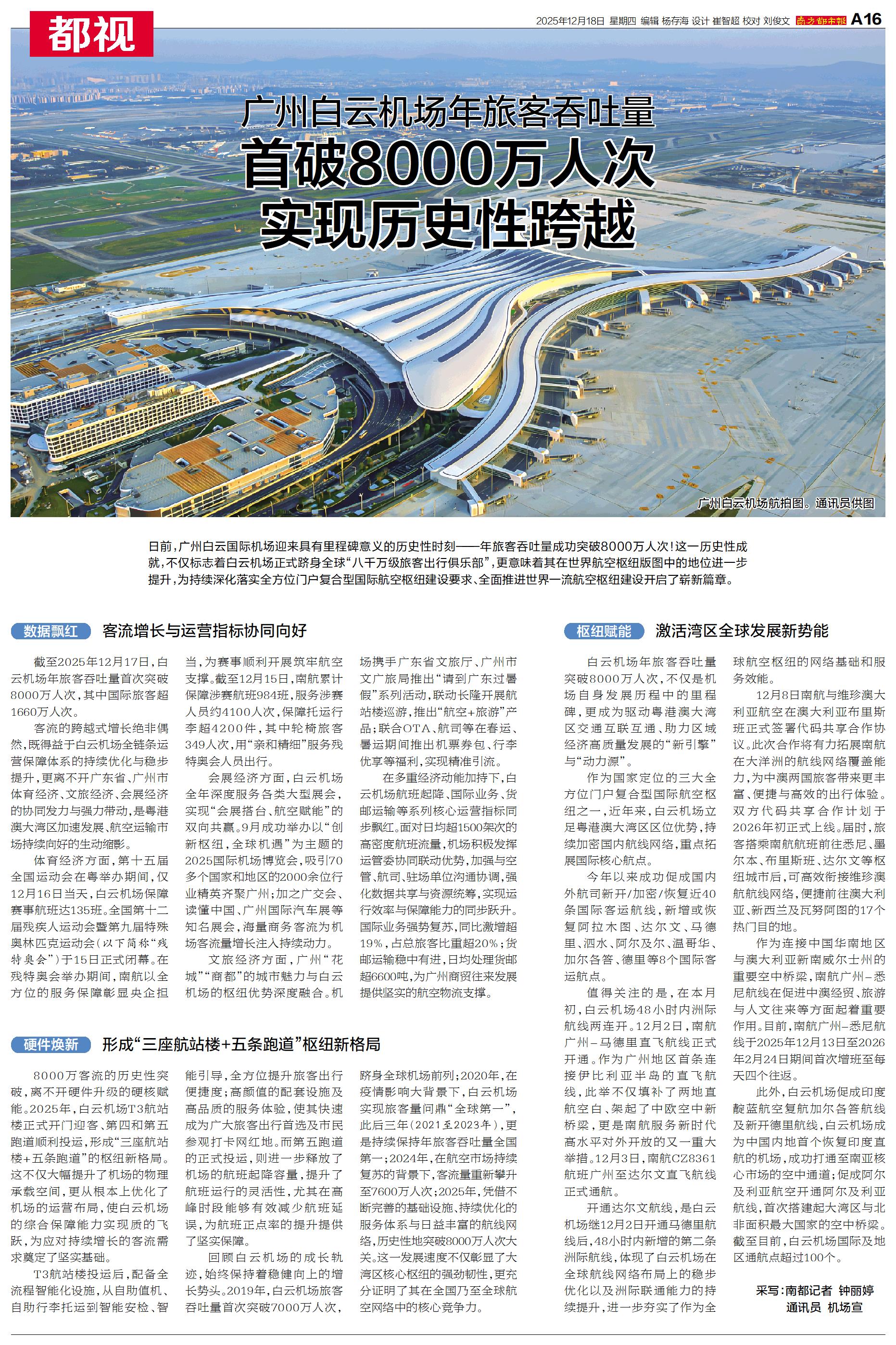 日前,广州白云国际机场迎来具有里程碑意义的历史性时刻——年旅客吞吐量成功突破8000万人次!