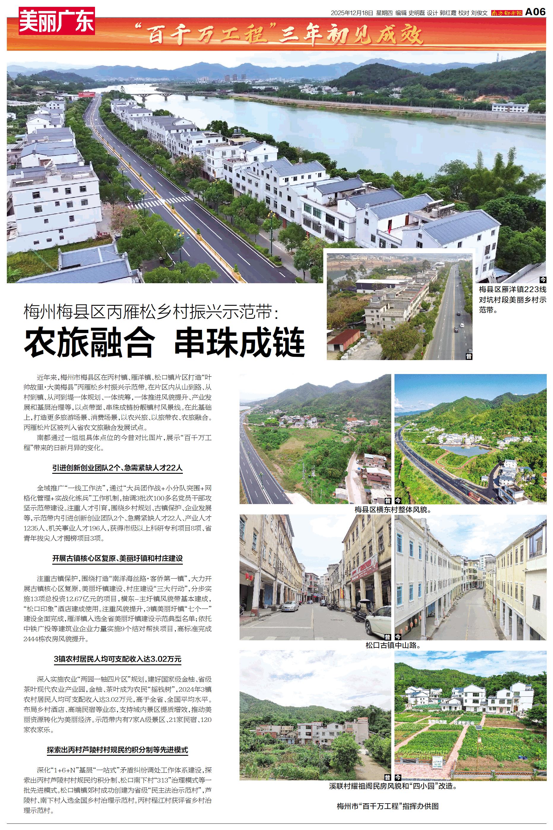 近年来,梅州市梅县区在丙村镇、雁洋镇、松口镇片区打造“叶帅故里·大美梅县”丙雁松乡村振兴示范带。