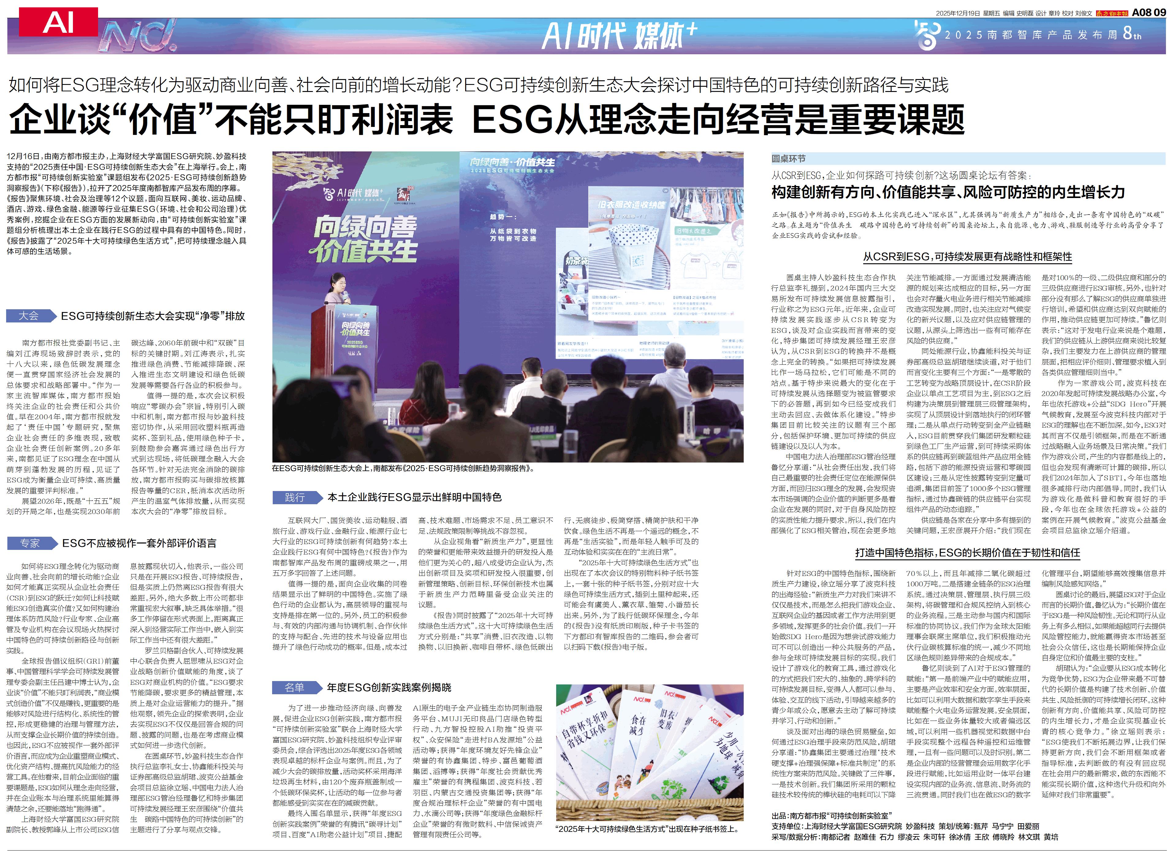 12月16日,由南方都市报主办,上海财经大学富国ESG研究院、妙盈科技支持的“2025责任中国·ESG可持续创新生态大会”在上海举行。