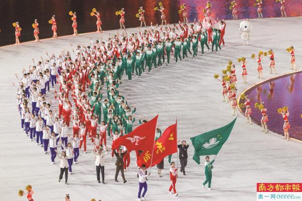 十五运会开幕式现场,粤港澳三地运动员代表同时出场。 南都记者 黎湛均 摄