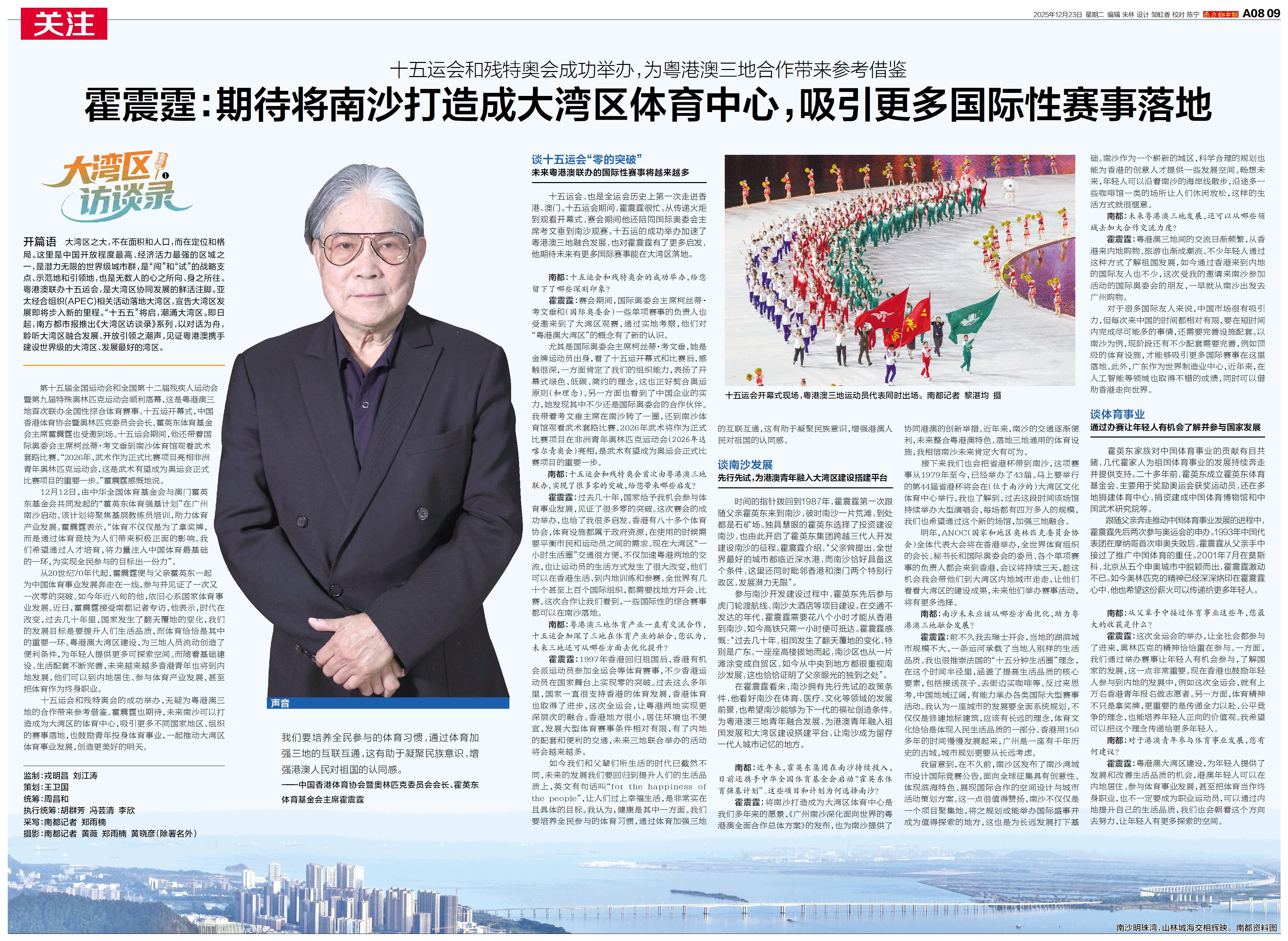 近日,霍震霆接受南都记者专访,他表示,时代在改变,过去几十年里,国家发生了翻天覆地的变化,我们的发展目标是要提升人们生活品质,而体育恰恰是其中的重要一环。