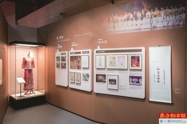 “时代偕行”单元记录红线女从演出舞台拓展至交流、教育、团结舞台的转型,呈现改革开放后她引领粤剧队伍开拓创新的辉煌,以及新时代粤剧工作者传承其艺术与精神、为中国式现代化注入文化力量的实践。“红线女作为国家文化使者,首次代表粤剧赴朝鲜、越南、新加坡、苏联等国交流,极大提升了粤剧的国际知名度。她还参与戏曲表演艺术研究班,与袁雪芬、常香玉等名家深度交流;晚年深耕粤剧教育,通过教材编写、技艺传承,让‘红腔’与粤剧精神代代相传。”