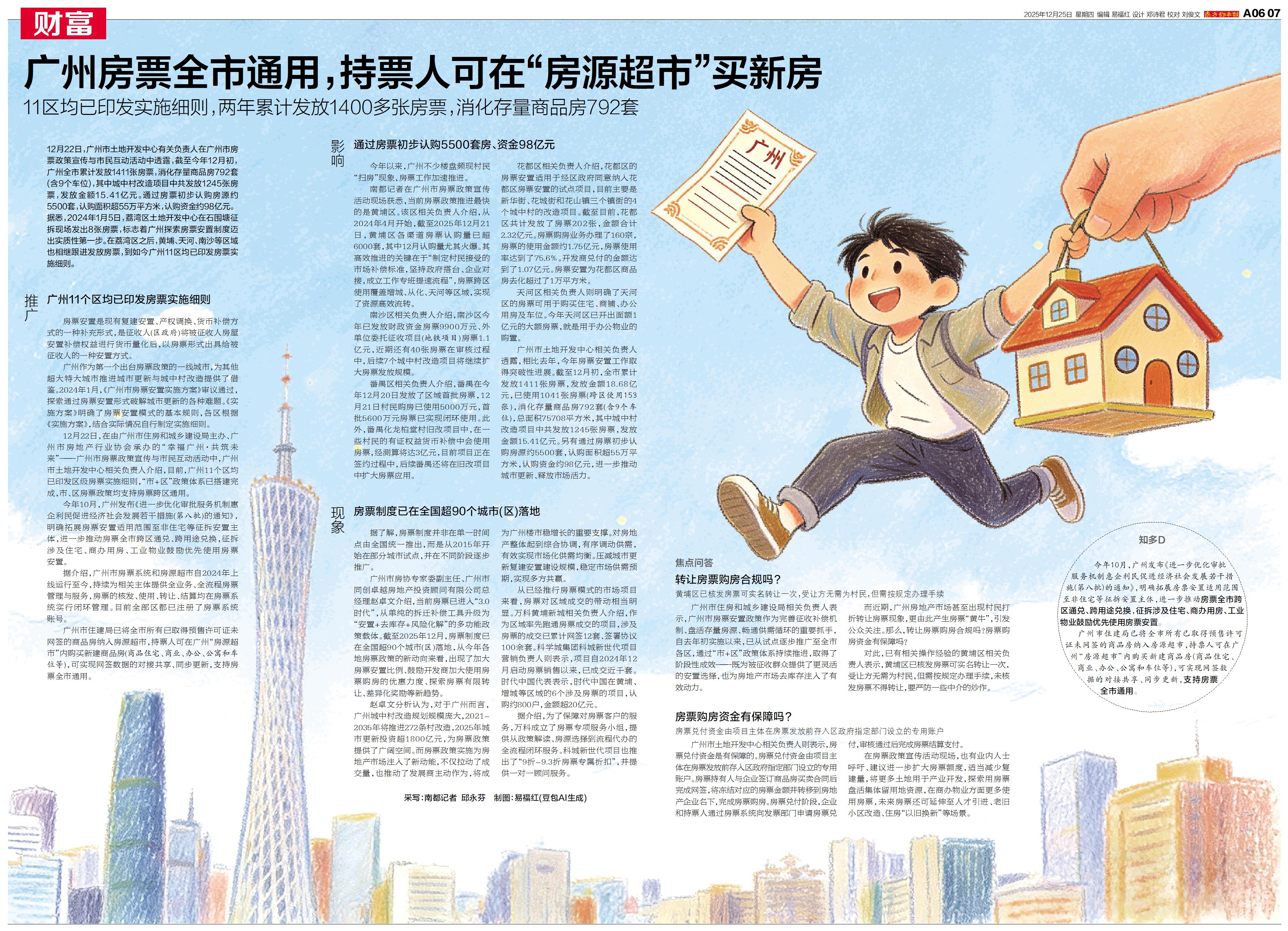 番禺区相关负责人介绍,番禺在今年12月20日发放了区域首批房票,12月21日村民购房已使用5000万元,首批5600万元房票已实现闭环使用。此外,番禺化龙柏堂村旧改项目中,在一些村民的有证权益货币补偿中会使用房票,经测算将达3亿元,目前项目正在签约过程中,后续番禺还将在旧改项目中扩大房票应用。