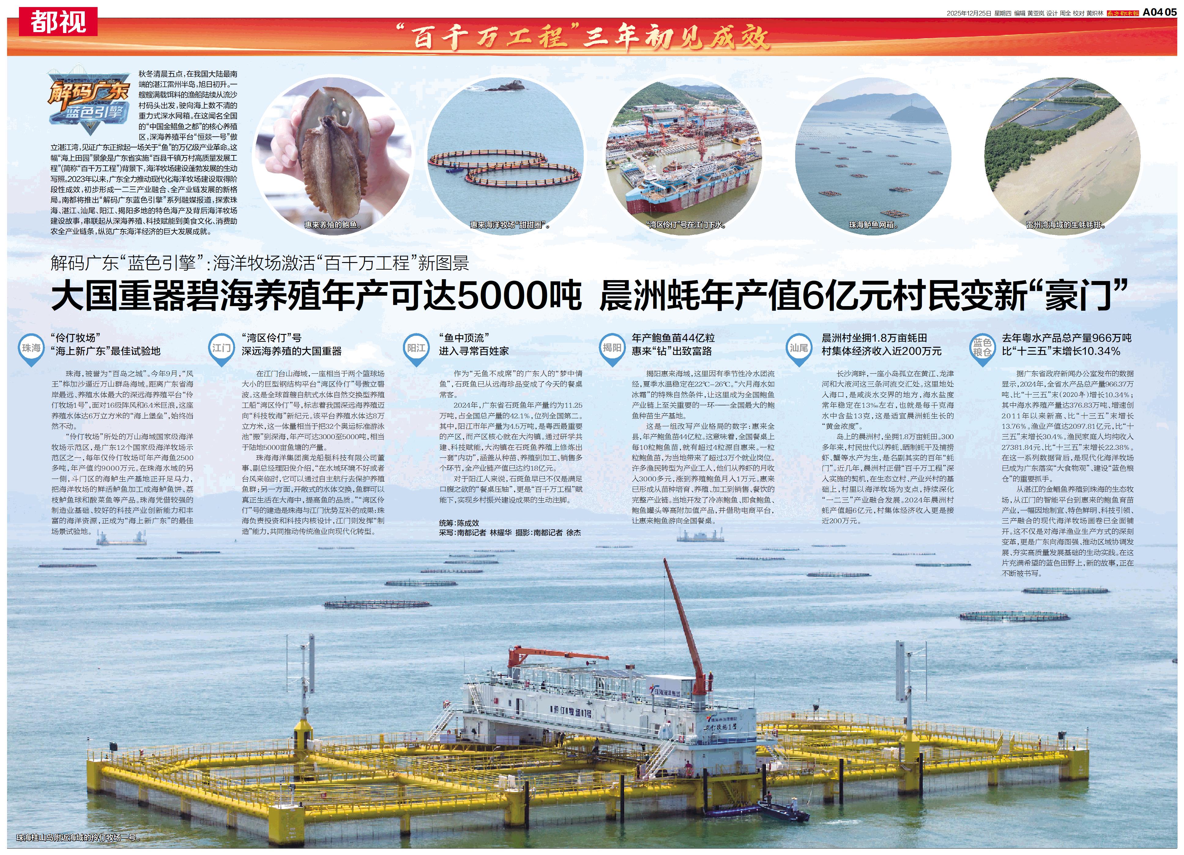 大国重器碧海养殖年产可达5000吨 晨洲蚝年产值6亿元村民变新“豪门”