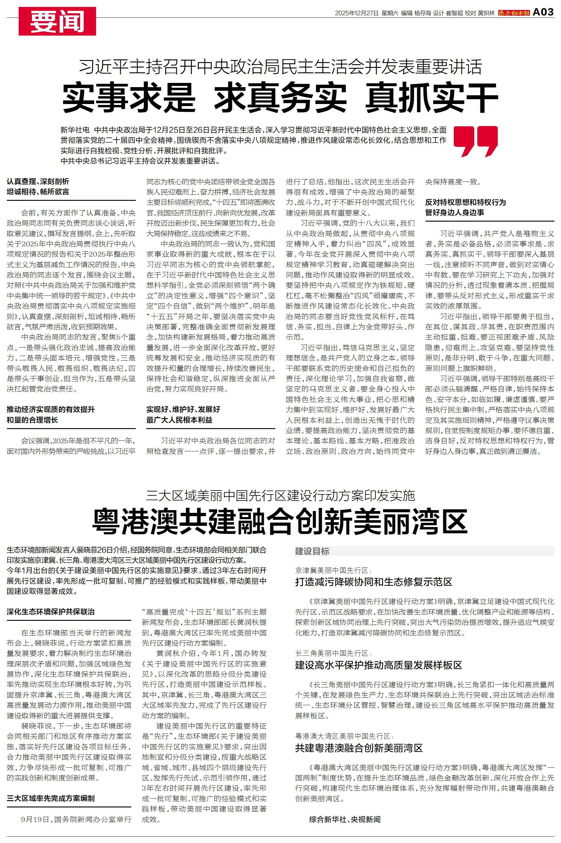 生态环境部新闻发言人裴晓菲26日介绍,经国务院同意,生态环境部会同相关部门联合印发实施京津冀、长三角、粤港澳大湾区三大区域美丽中国先行区建设行动方案。