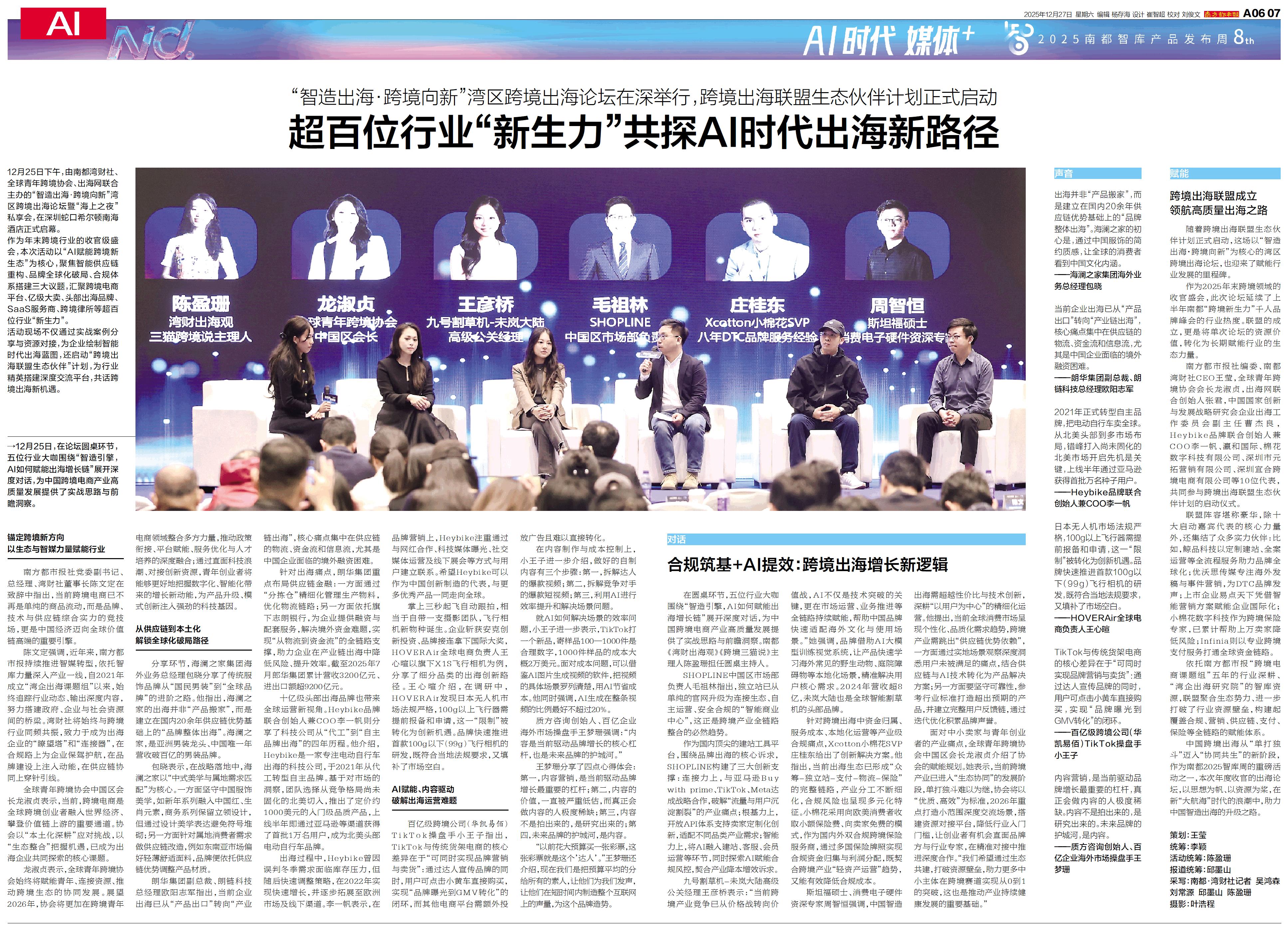 12月25日下午,由南都湾财社、全球青年跨境协会、出海网联合主办的“智造出海·跨境向新”湾区跨境出海论坛暨“海上之夜”私享会,在深圳蛇口希尔顿南海酒店正式启幕。