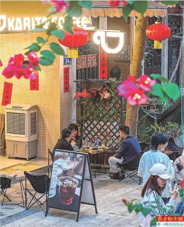 一系列公共基础设施改造完成后,旧南海县社区便开始活化辖区内公房,腾挪出来做商业。一些居民看到社区氛围越来越好,也利用“住改商”政策,将住宅改为商铺。今年,旧南海县社区新增“住改商”近十家,已聚集21家咖啡店,成为街区的“流量密码”。