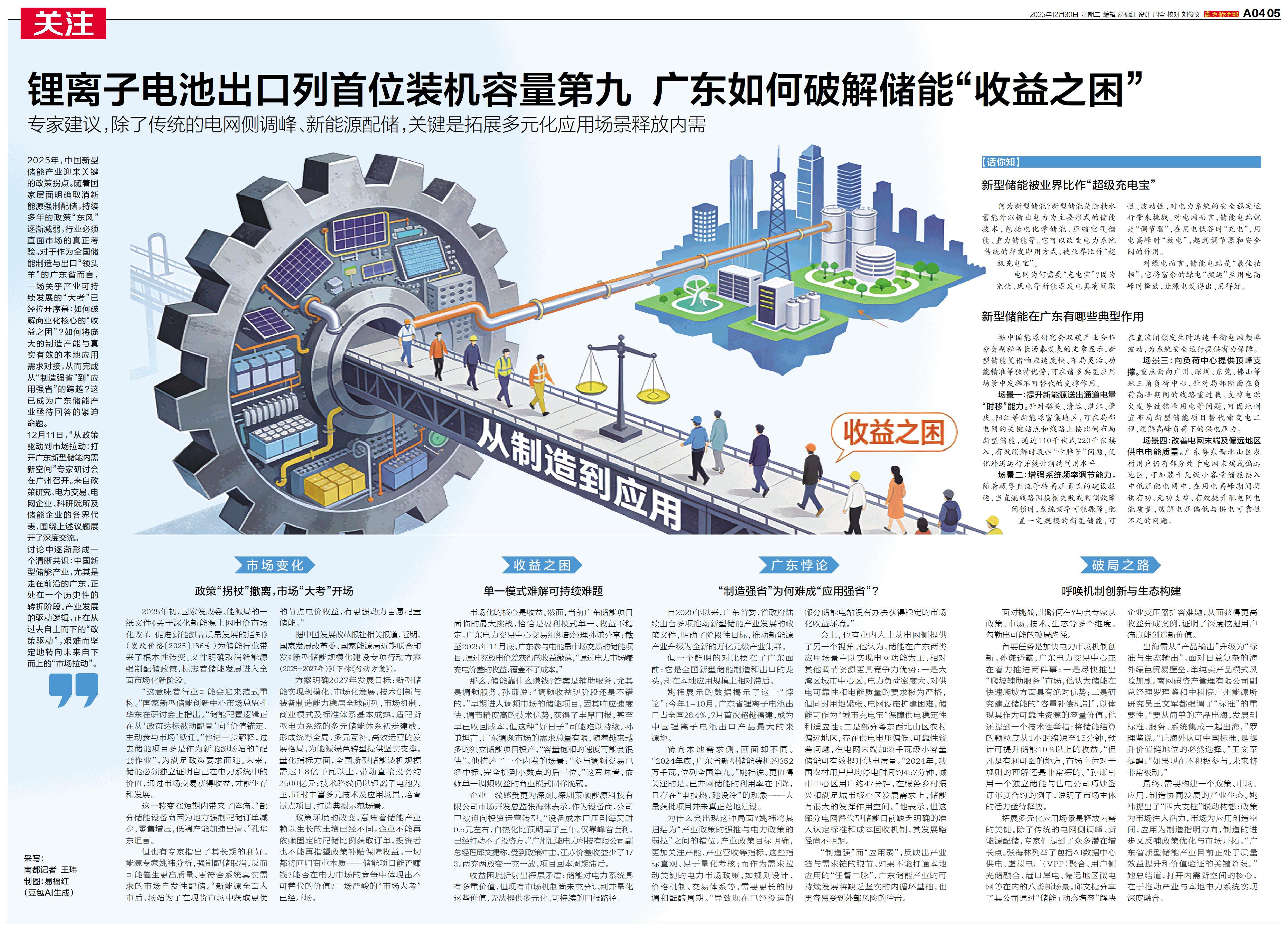 锂离子电池出口列首位装机容量第九 广东如何破解储能“收益之困”