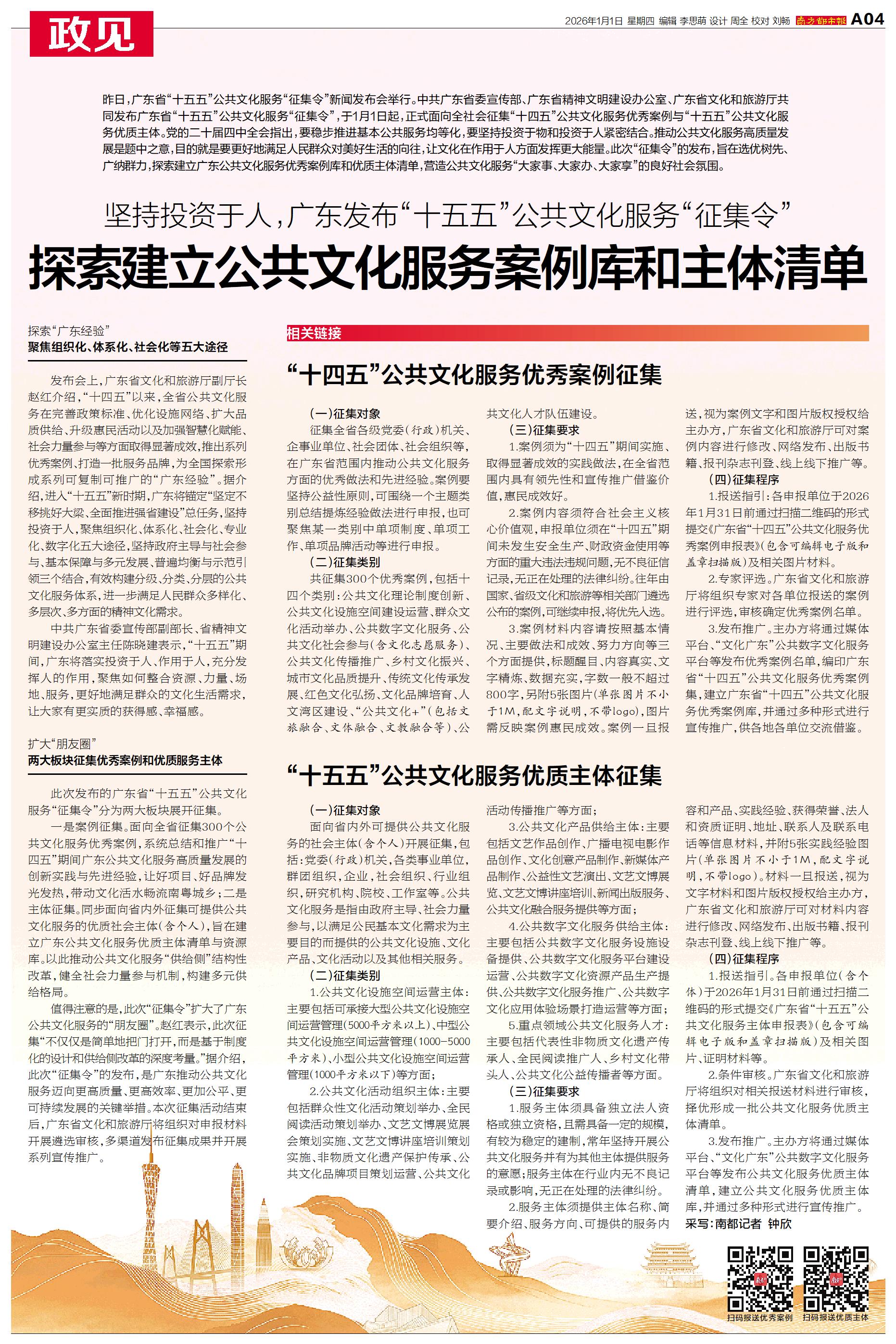昨日,广东省“十五五”公共文化服务“征集令”新闻发布会举行。