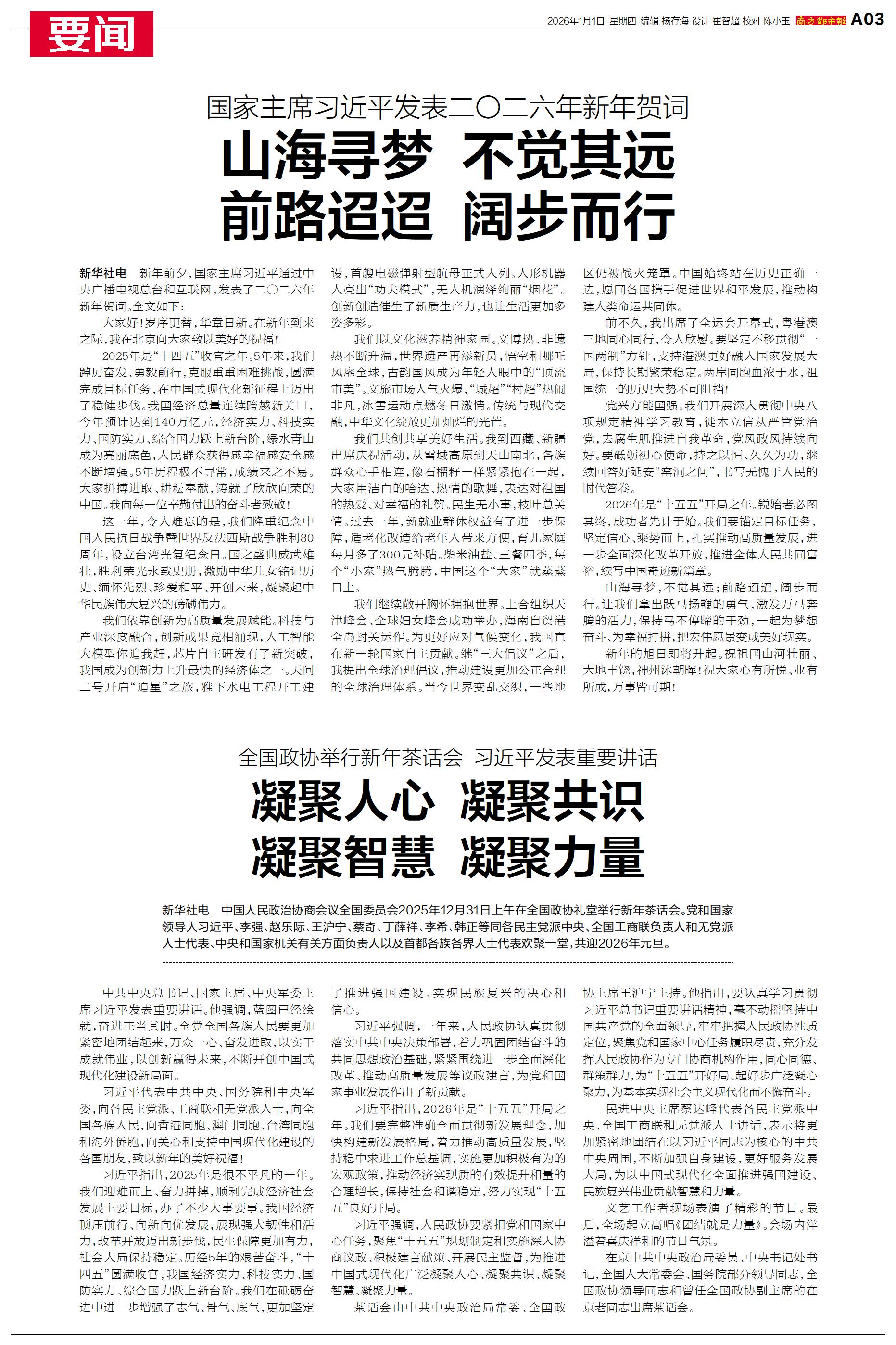 新年前夕,国家主席习近平通过中央广播电视总台和互联网,发表了二〇二六年新年贺词。