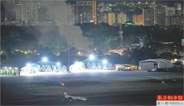 1月3日,委内瑞拉首都加拉加斯拉卡洛塔机场升起浓烟。