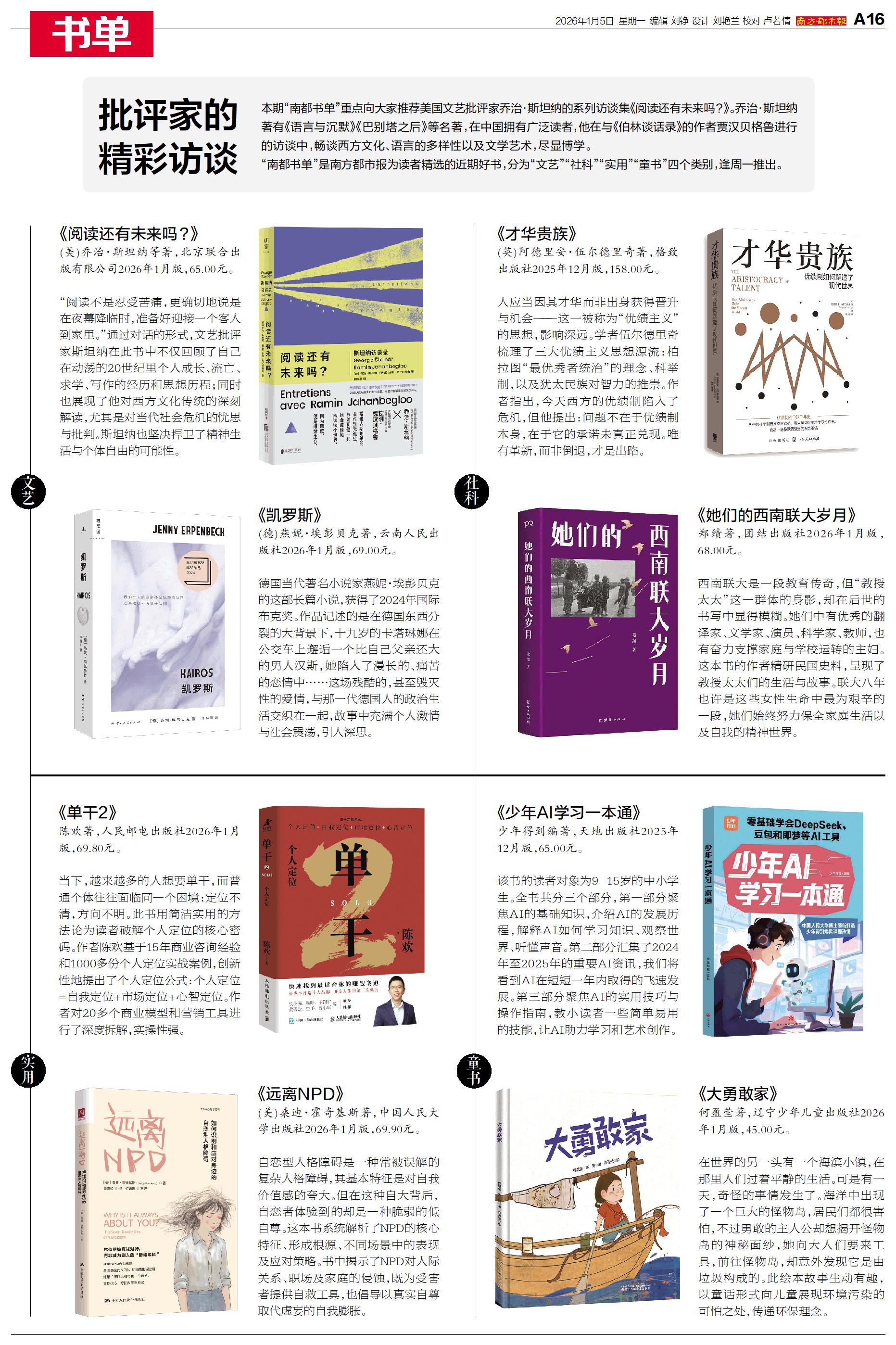 本期“南都书单”重点向大家推荐美国文艺批评家乔治·斯坦纳的系列访谈集《阅读还有未来吗?》。