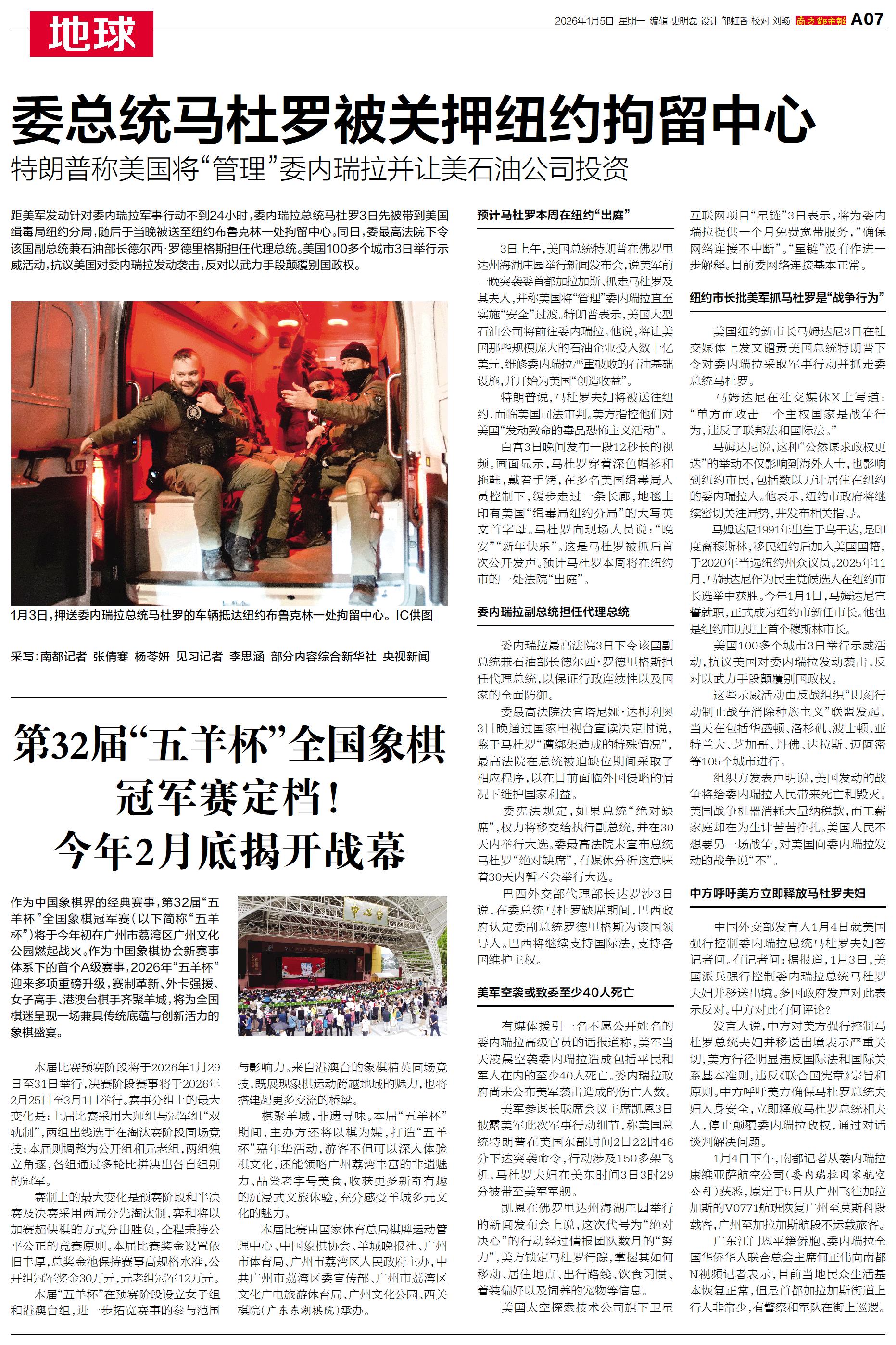 距美军发动针对委内瑞拉军事行动不到24小时,委内瑞拉总统马杜罗3日先被带到美国缉毒局纽约分局,随后于当晚被送至纽约布鲁克林一处拘留中心。