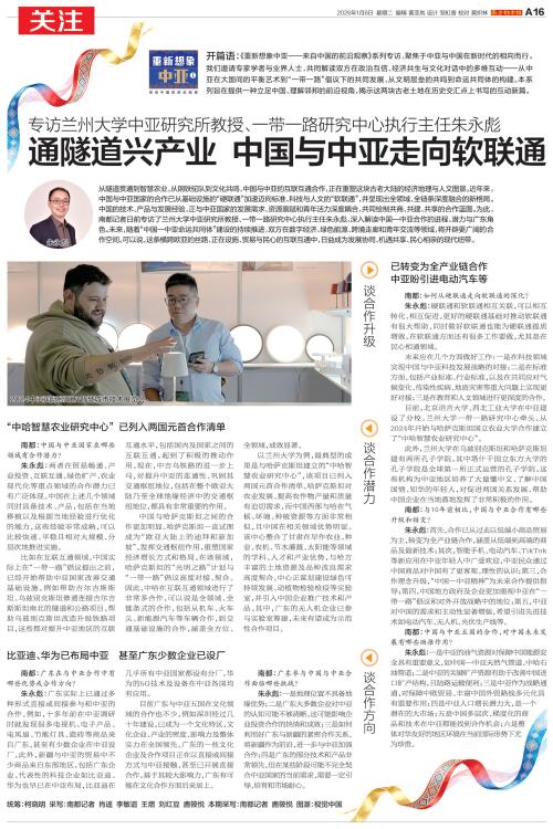 从隧道贯通到智慧农业,从钢铁驼队到文化共鸣,中国与中亚的互联互通合作,正在重塑这块古老大陆的经济地理与人文图景。近年来,中国与中亚国家的合作已从基础设施的“硬联通”加速迈向标准、科技与人文的“软联通”,并呈现出全领域、全链条深度融合的新格局。中国的技术、产品与发展经验,正与中亚国家的发展需求、资源禀赋和青年活力深度耦合,共同绘制共商、共建、共享的合作蓝图。为此,南都记者日前专访了兰州大学中亚研究所教授、一带一路研究中心执行主任朱永彪,深入解读中国—中亚合作的进程、潜力与广东角色。未来,随着“中国—中亚命运共同体”建设的持续推进,双方在数字经济、绿色能源、跨境走廊和青年交流等领域,将开辟更广阔的合作空间。可以说,这条横跨欧亚的丝路,正在设施、贸易与民心的互联互通中,日益成为发展协同、机遇共享、民心相亲的现代纽带。