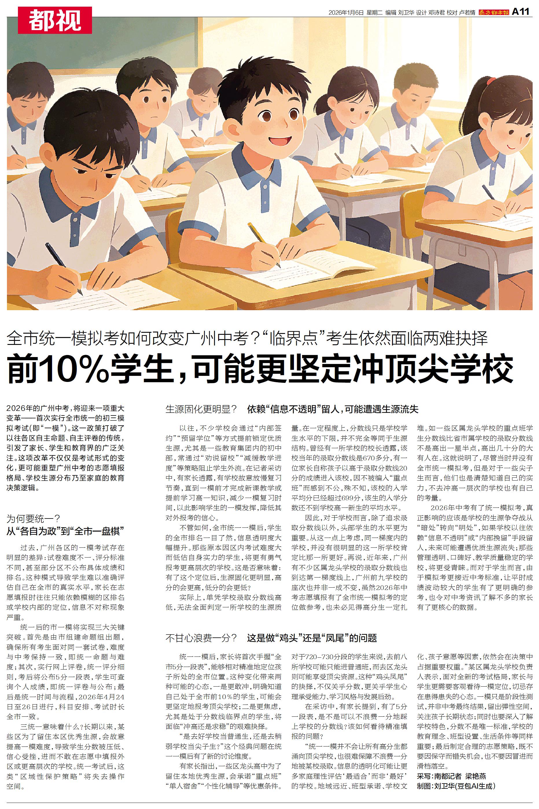 2026年的广州中考,将迎来一项重大变革——首次实行全市统一的初三模拟考试(即“一模”)。