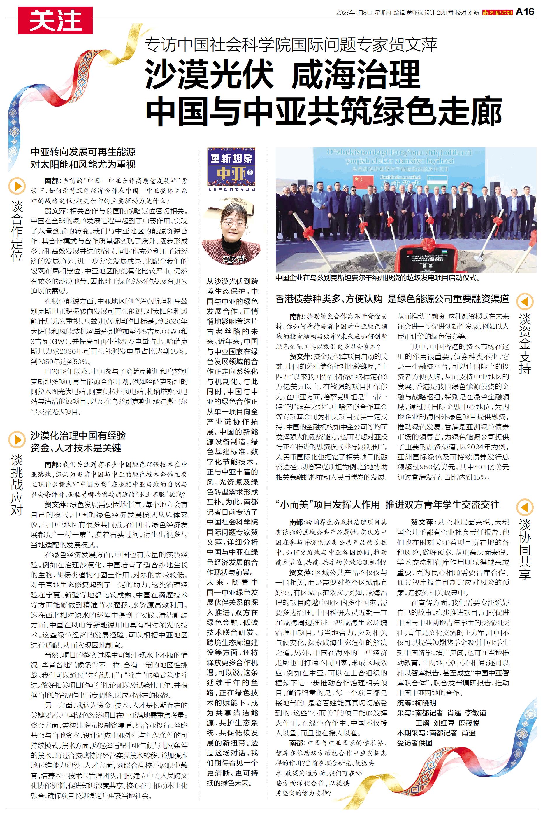 沙漠光伏 咸海治理 中国与中亚共筑绿色走廊
