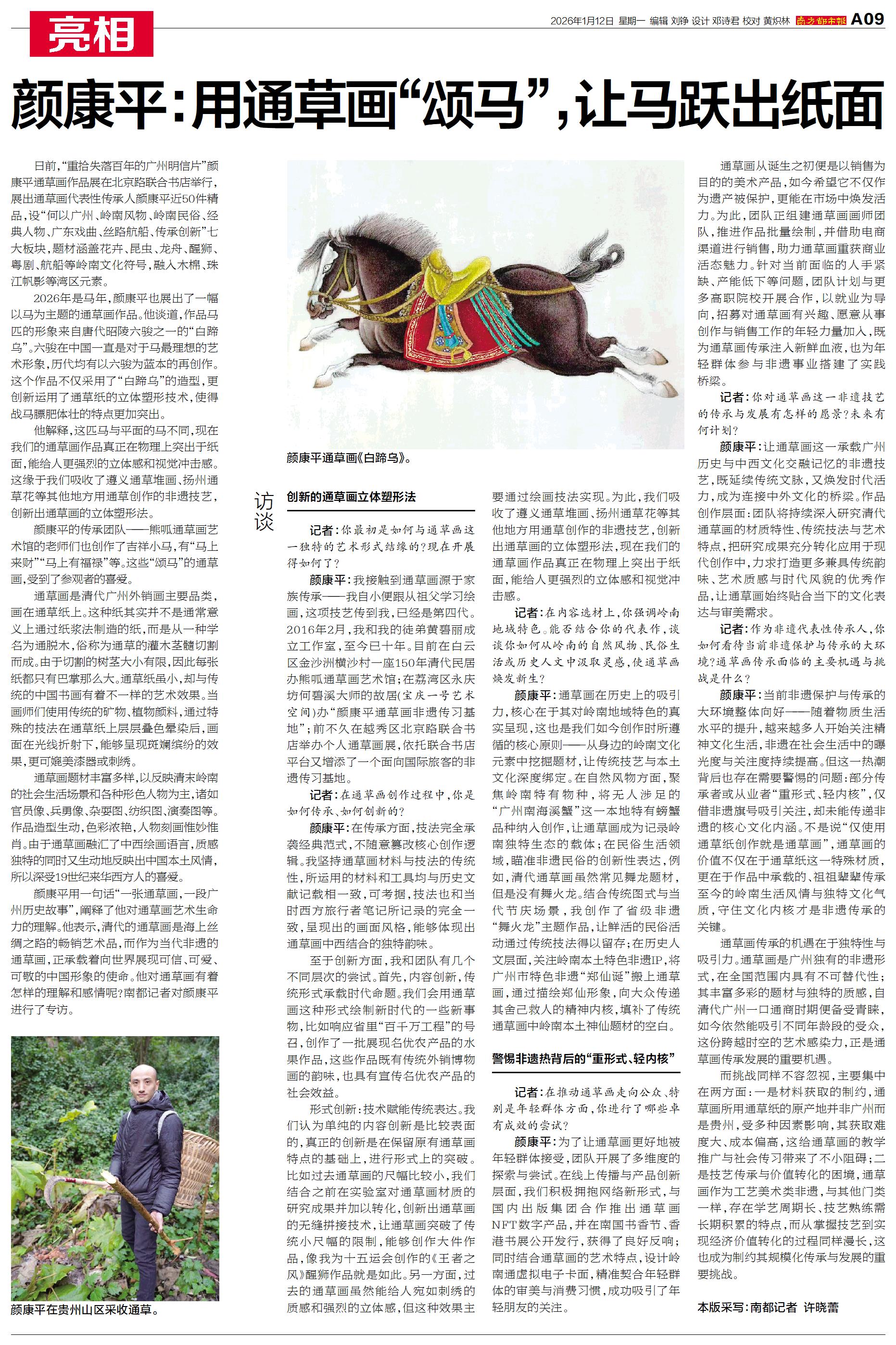 颜康平:用通草画“颂马”,让马跃出纸面