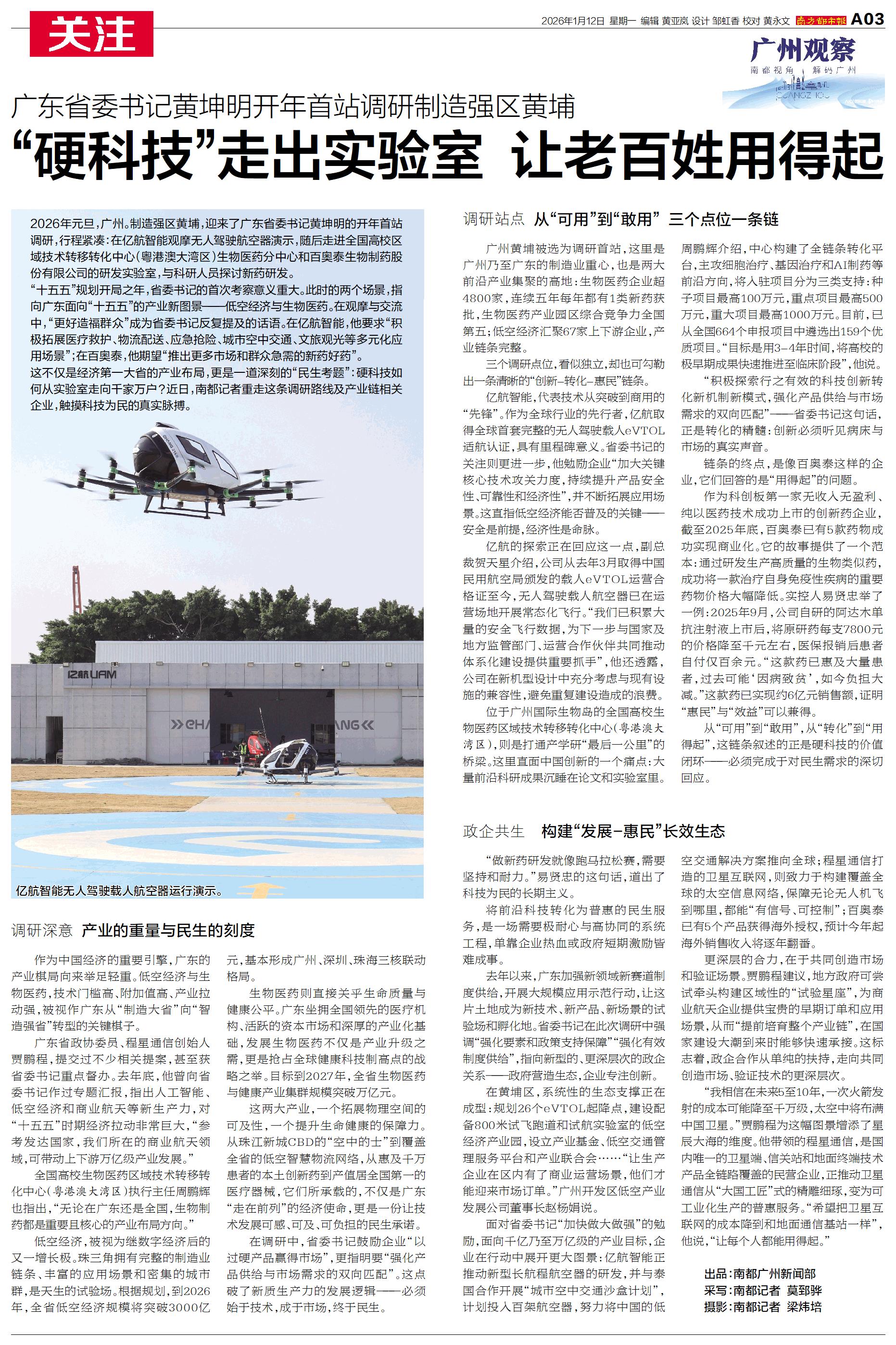 2026年元旦,广州。制造强区黄埔,迎来了广东省委书记黄坤明的开年首站调研。