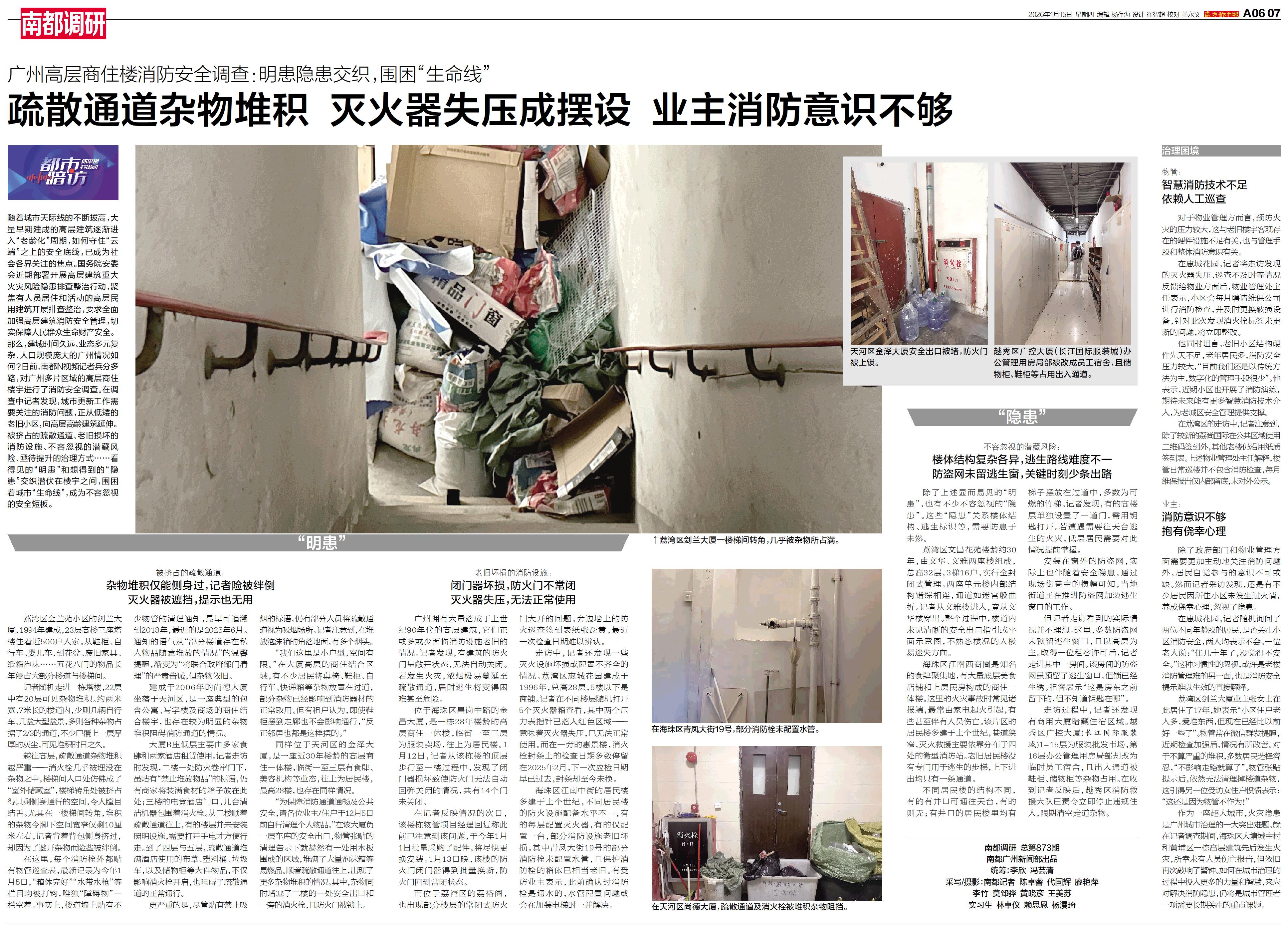 疏散通道杂物堆积 灭火器失压成摆设 业主消防意识不够