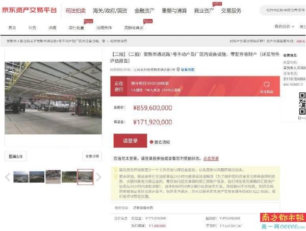 根据法院委托的苏州市天元土地房地产评估有限公司出具的报告,上述资产估值仅为15.35亿元,其中土地厂房11.59亿元、设备3.76亿元。