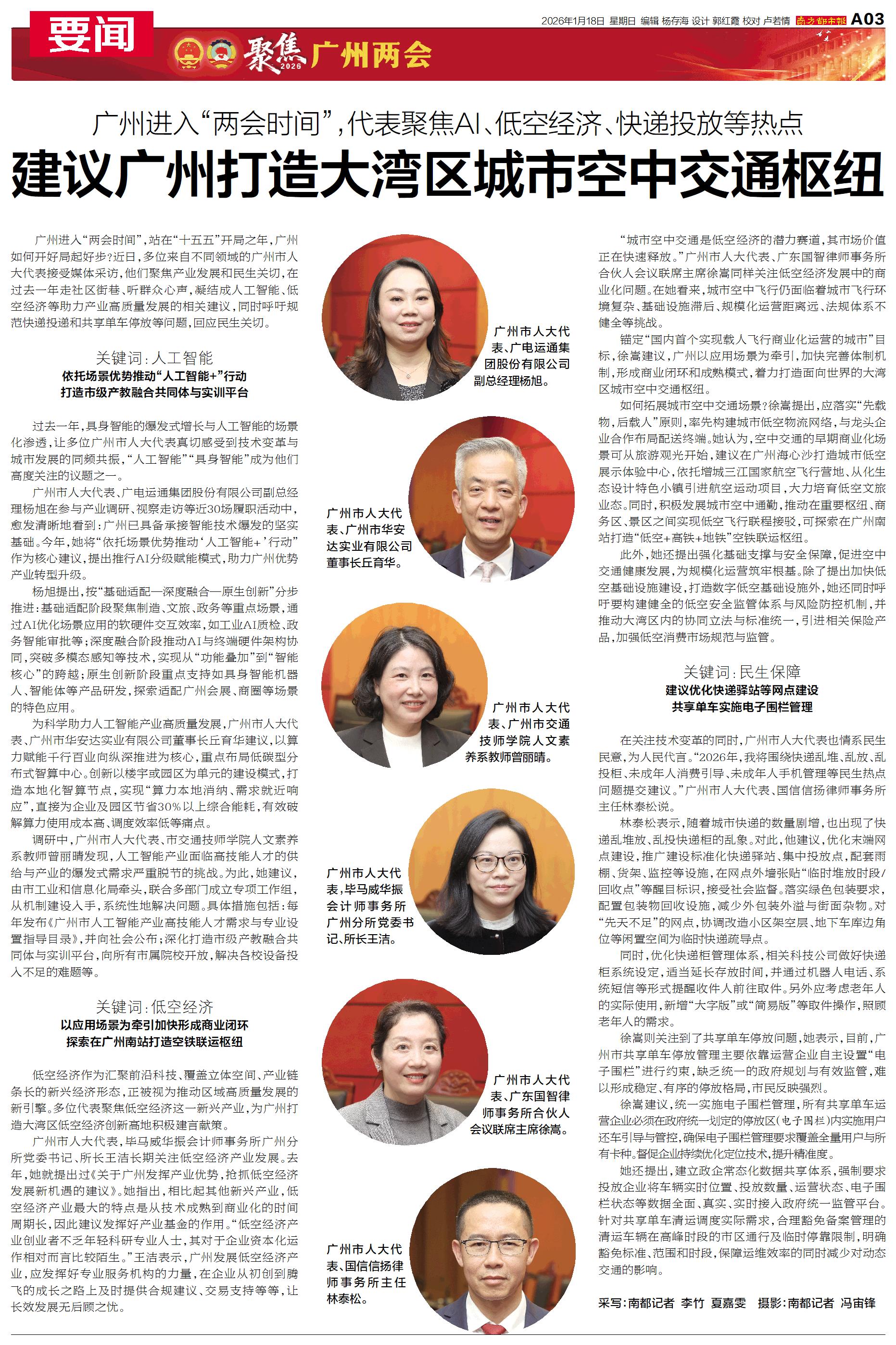近日,多位来自不同领域的广州市人大代表接受媒体采访,回应民生关切。