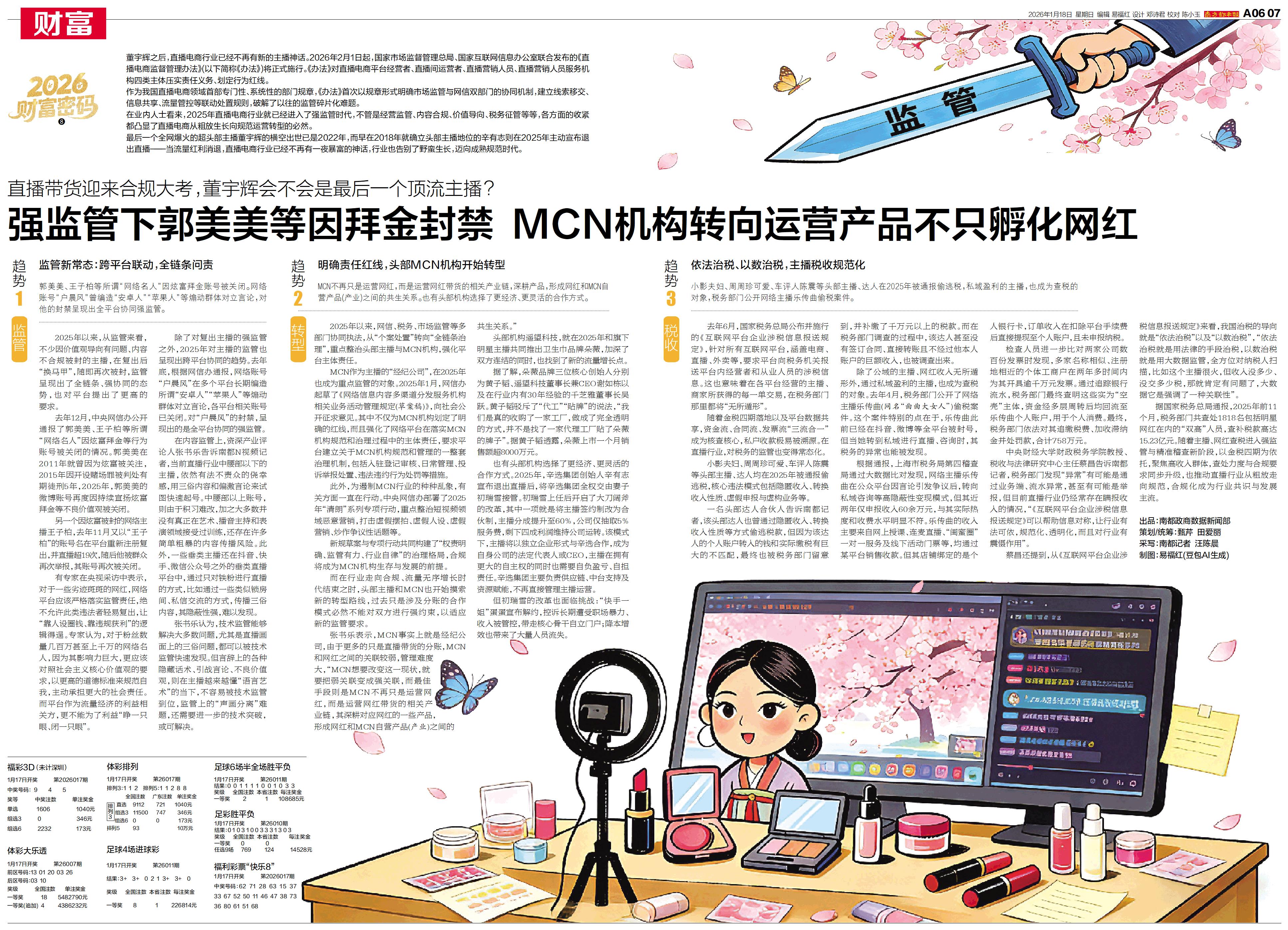 2026年2月1日起,国家市场监督管理总局、国家互联网信息办公室联合发布的《直播电商监督管理办法》将正式施行。
