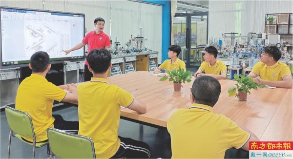 去年11月,江门市技师学院成功跻身广东省首批10家青年技师工作站培育单位之列。该工作站由吴恩来领衔,汇聚了全国技术能手、企业工程师与青年骨干教师,形成“技能大师+企业工程师+青年教师”的核心团队。这个工作站,被他视为“技能技术人才的加速器”。“近五年,我们培养了高技能人才300多人,解决企业技术难题13项。”吴恩来介绍。