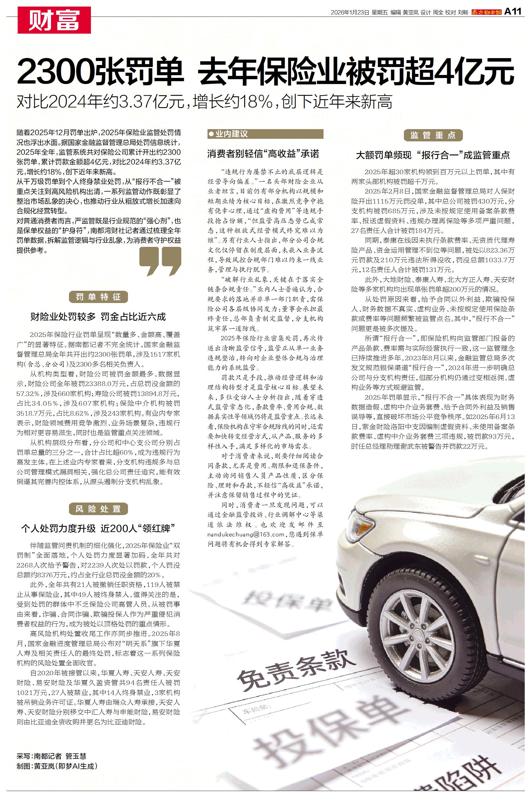 2300张罚单 去年保险业被罚超4亿元