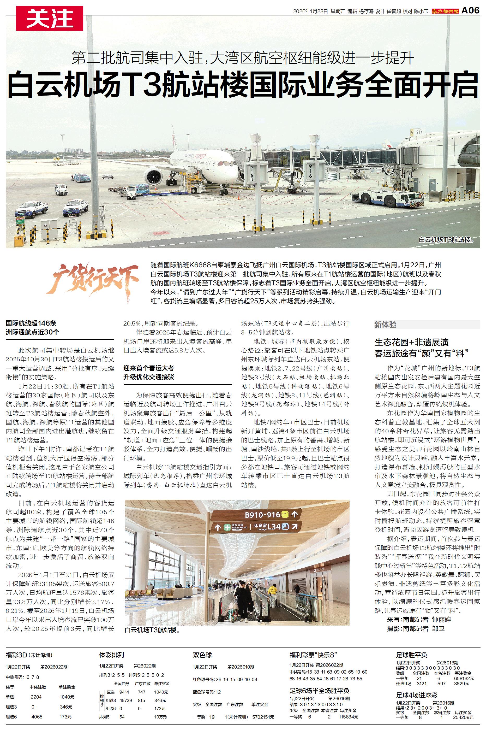 随着国际航班K6668自柬埔寨金边飞抵广州白云国际机场,T3航站楼国际区域正式启用。