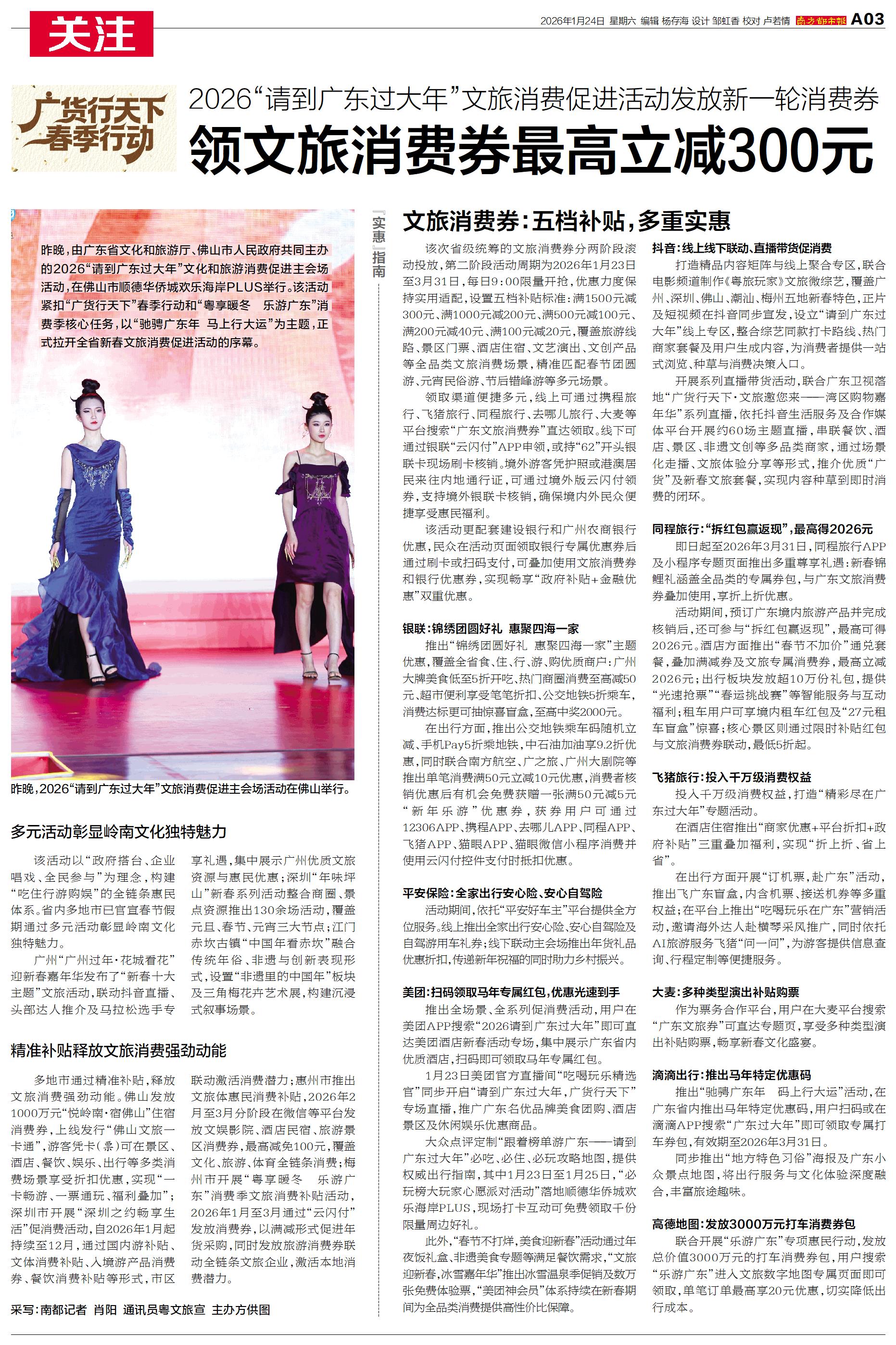 投入千万级消费权益,打造“精彩尽在广东过大年”专题活动。