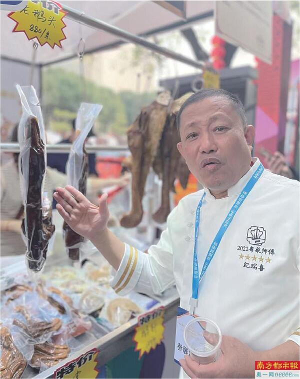 饶有趣味的是,汕头卤鹅(展位B20)与重庆荣昌卤鹅(展位B18)同处美食非遗阵营,更方便市民游客寻卤鹅品两味。南都记者了解到,自26日“开市”不到半天的时间,“汕头卤鹅”现场已零售了50只,广受欢迎。