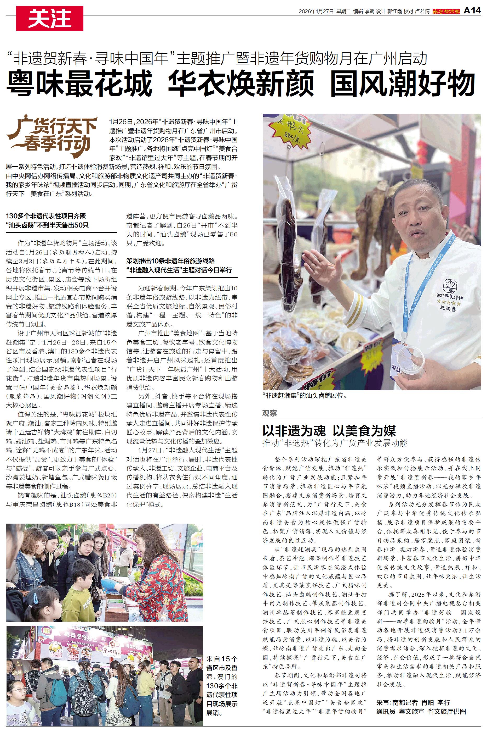 1月26日,2026年“非遗贺新春·寻味中国年”主题推广暨非遗年货购物月在广东省广州市启动。