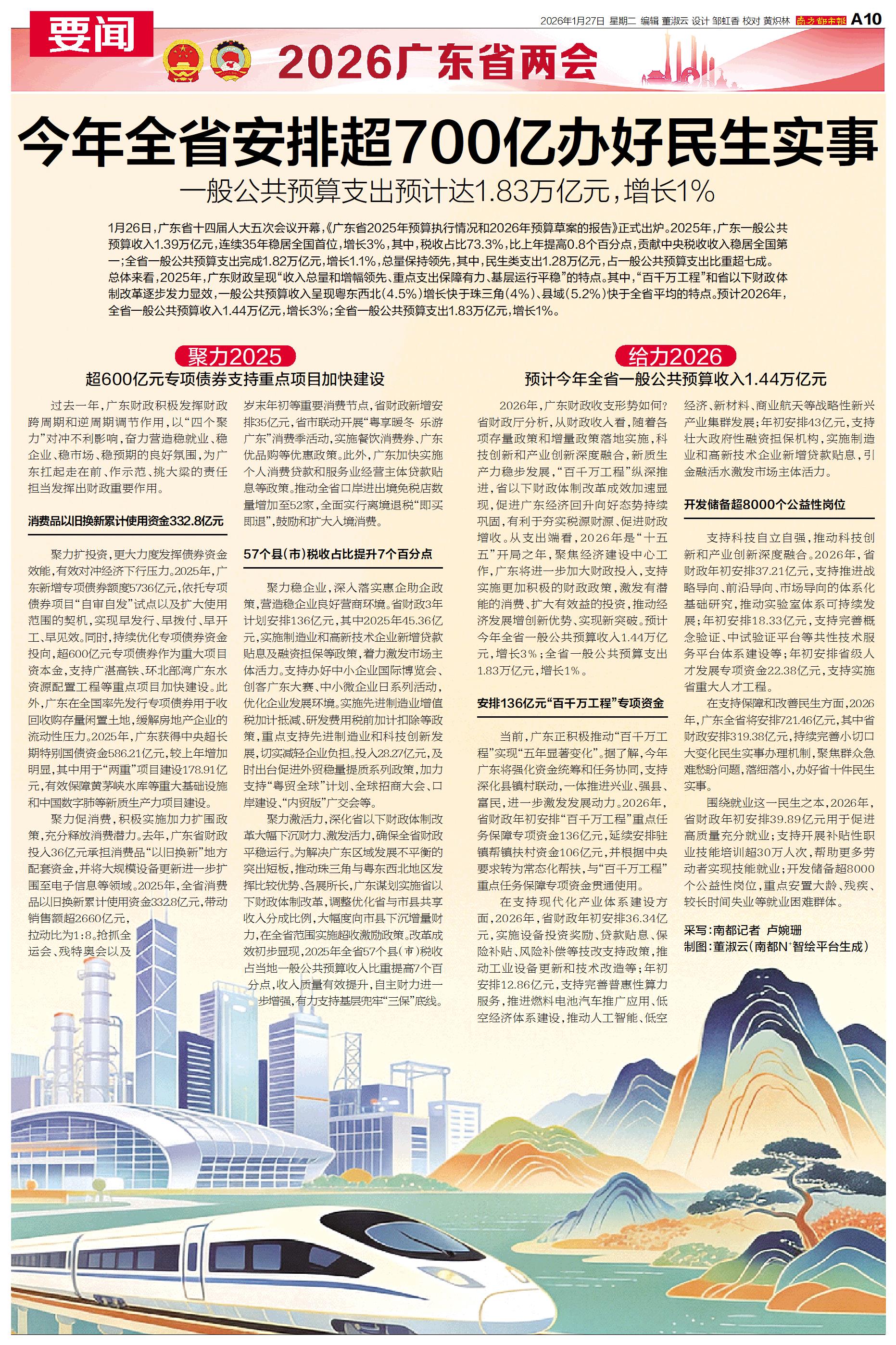 1月26日,广东省十四届人大五次会议开幕,《广东省2025年预算执行情况和2026年预算草案的报告》正式出炉。