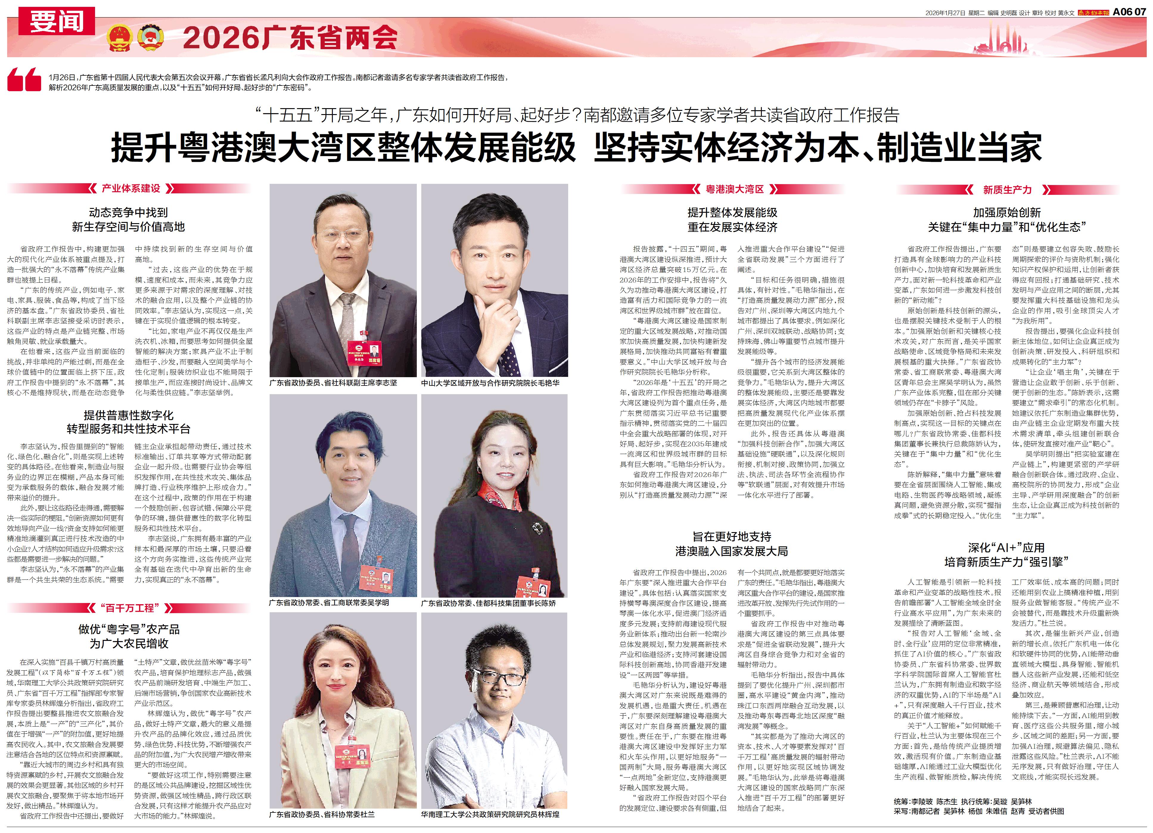 提升粤港澳大湾区整体发展能级 坚持实体经济为本、制造业当家