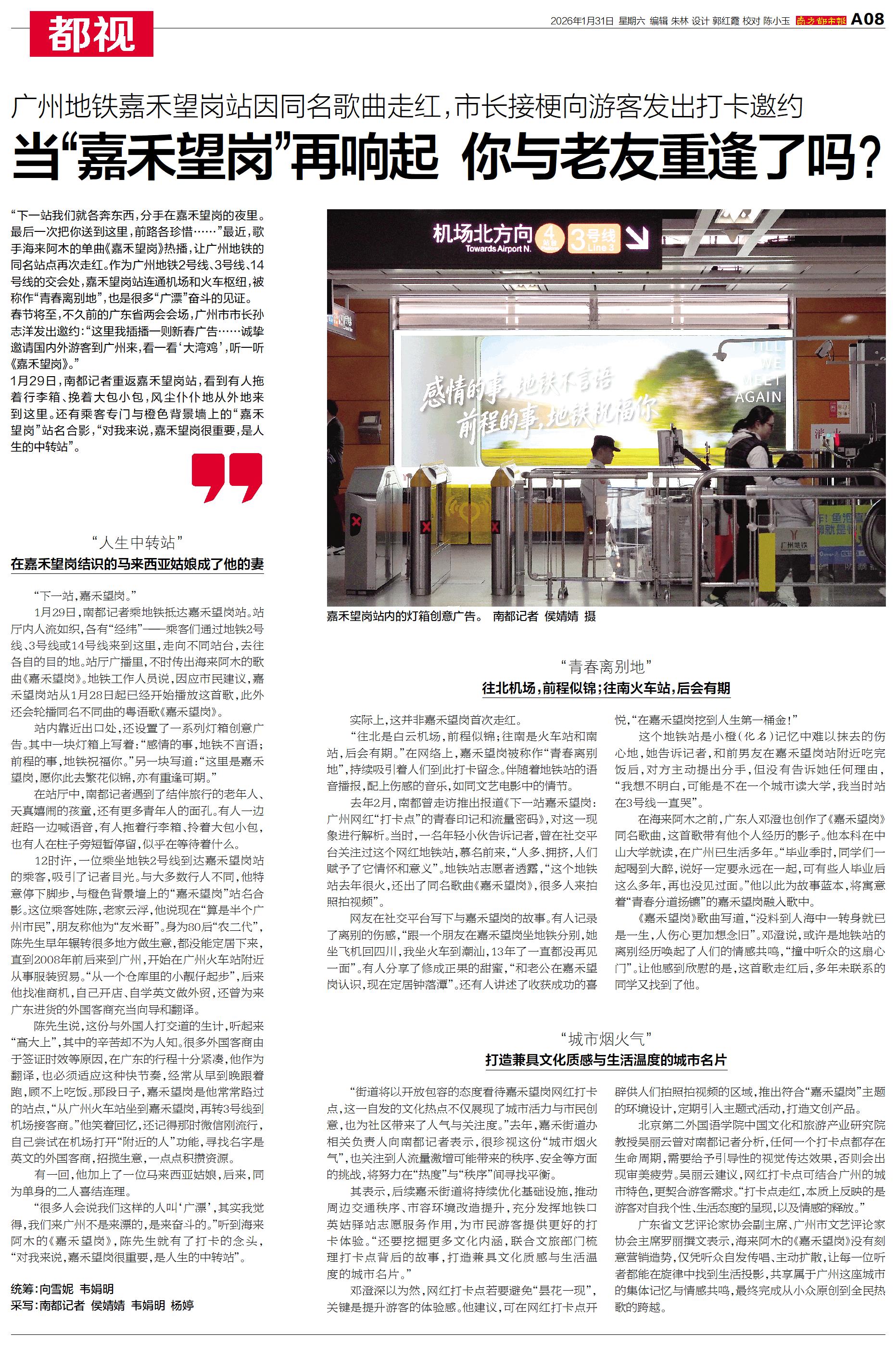 “下一站我们就各奔东西,分手在嘉禾望岗的夜里。最后一次把你送到这里,前路各珍惜……”最近,歌手海来阿木的单曲《嘉禾望岗》热播,让广州地铁的同名站点再次走红。