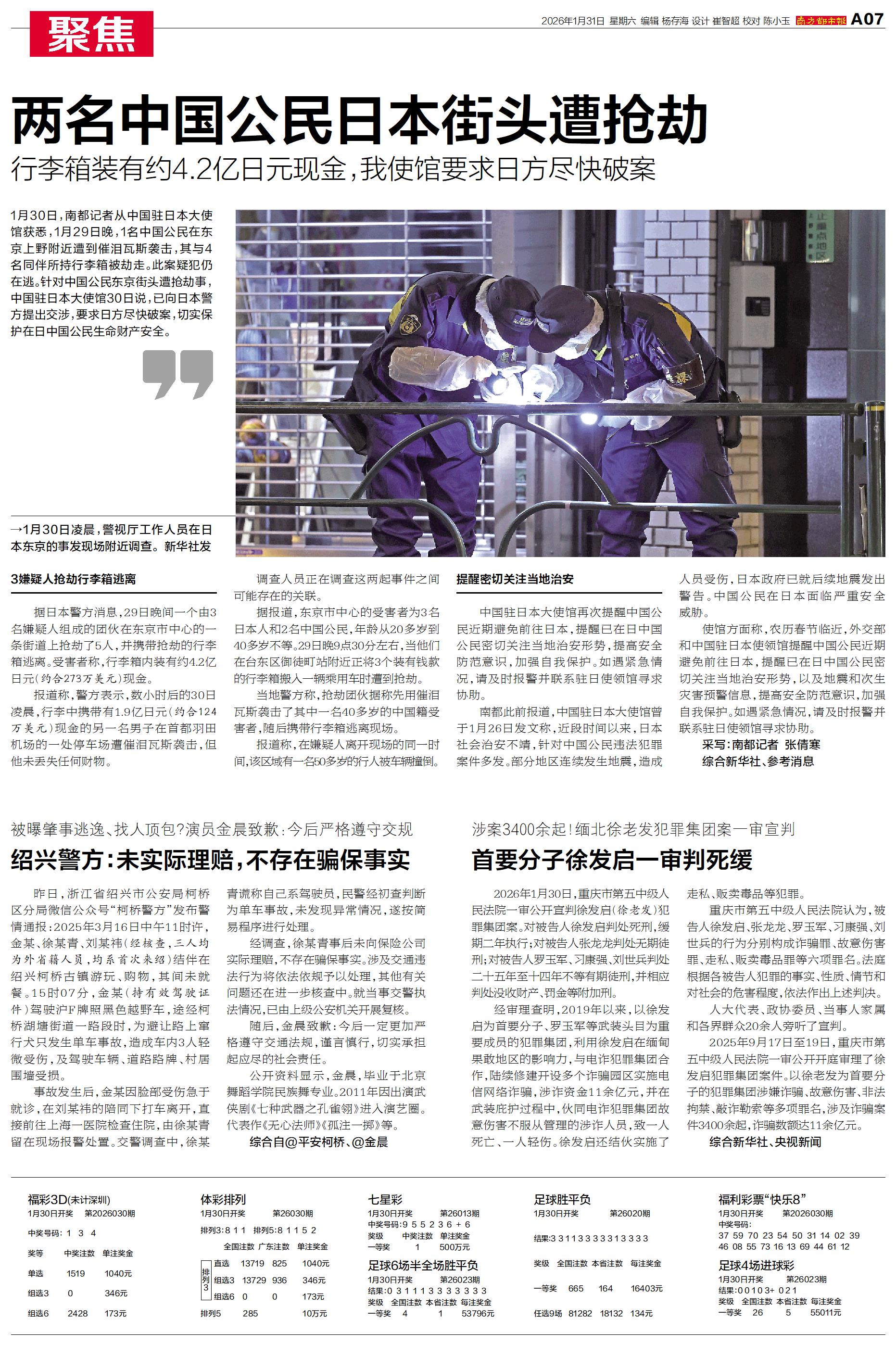 1月30日,南都记者从中国驻日本大使馆获悉,1月29日晚,1名中国公民在东京上野附近遭到催泪瓦斯袭击,其与4名同伴所持行李箱被劫走。