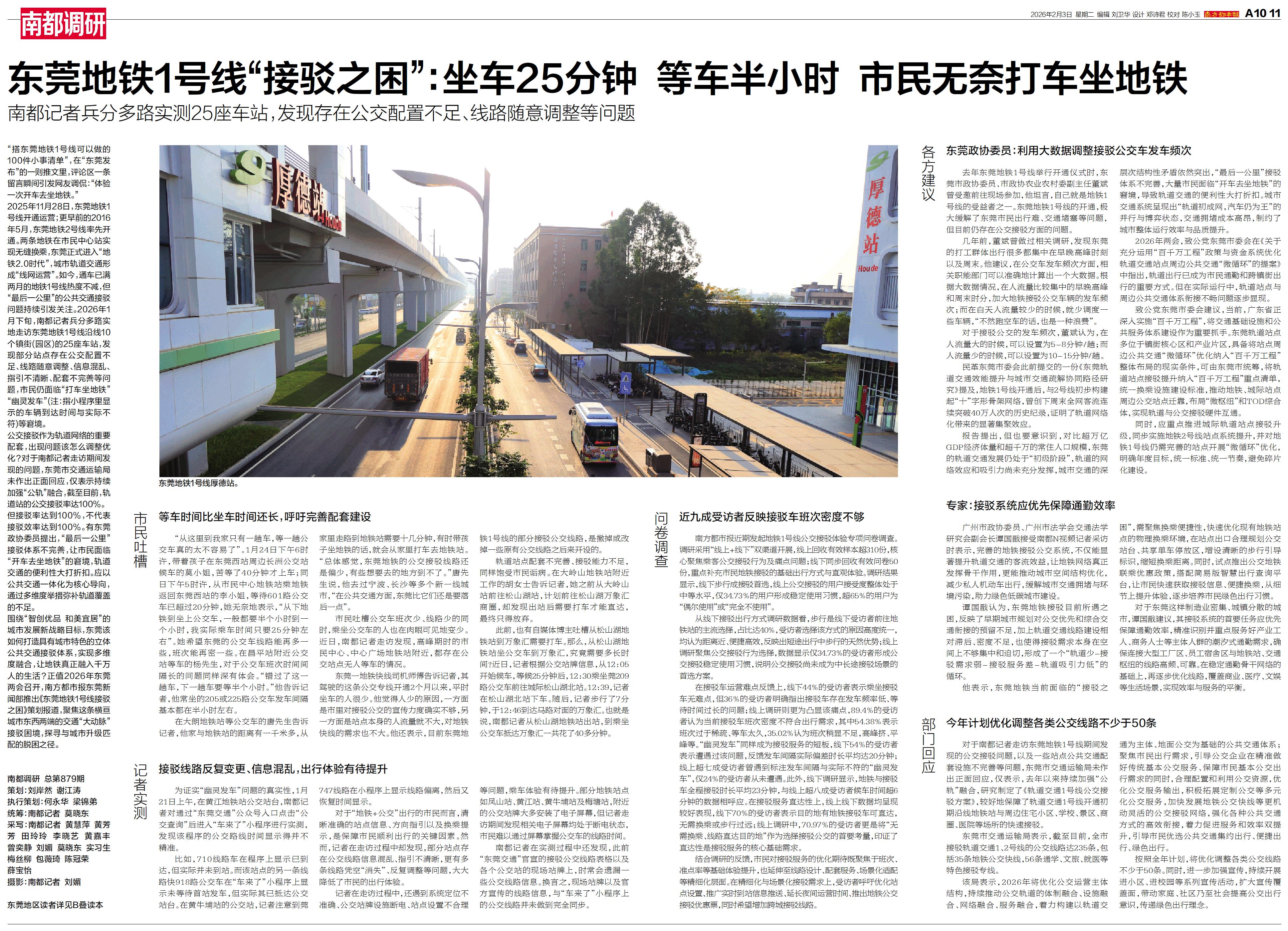 南方都市报东莞新闻部推出《东莞地铁1号线接驳之困》策划报道,聚焦这条横亘城市东西两端的交通“大动脉”接驳困境,探寻与城市升级匹配的脱困之径。