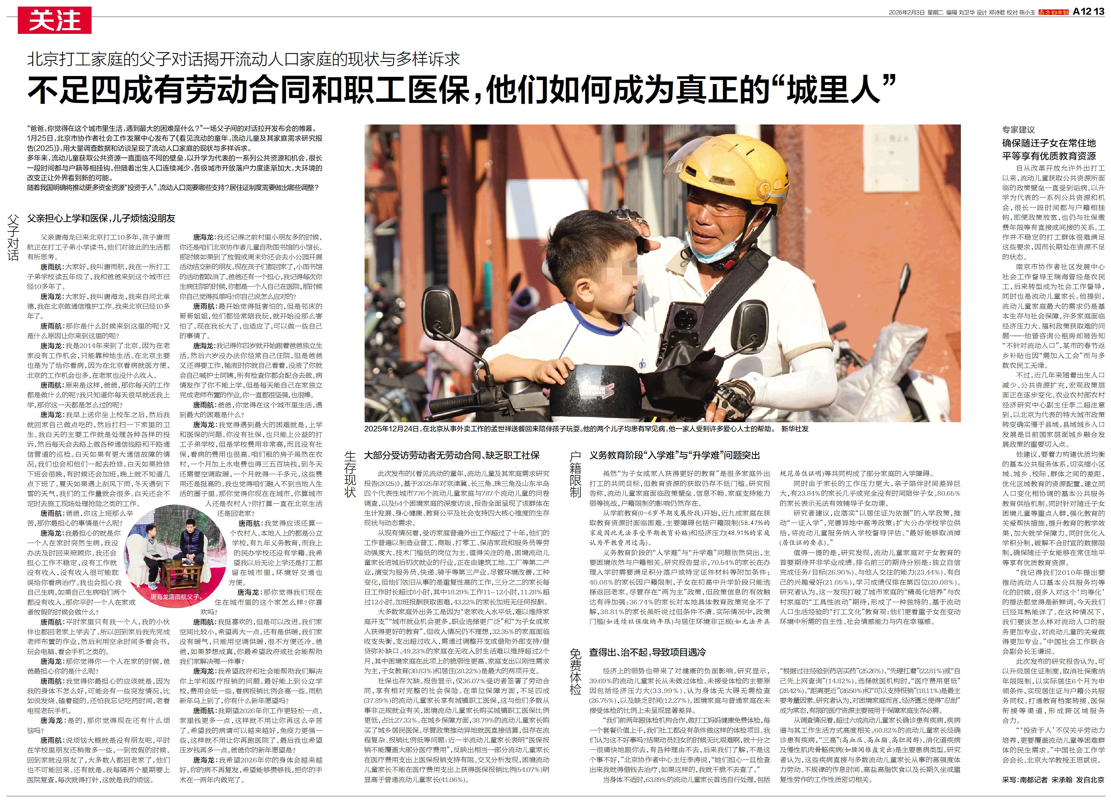 1月25日,北京市协作者社会工作发展中心发布了《看见流动的童年,流动儿童及其家庭需求研究报告(2025)》,用大量调查数据和访谈呈现了流动人口家庭的现状与多样诉求。