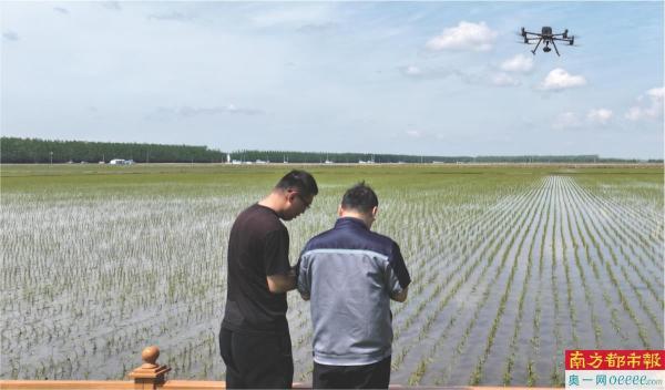 黑龙江一农业公司搭载多光谱、可见光摄像头的无人机对水稻插秧后田块进行土壤墒情监测。 新华社发