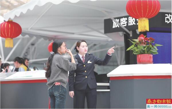 广州南站,工作人员全力保障旅客有序出行。