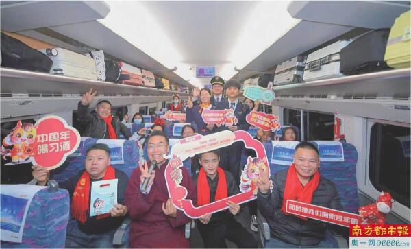 2月5日14点30分,从广州南站发出的D1854次务工返乡专列准时抵达贵阳北站。