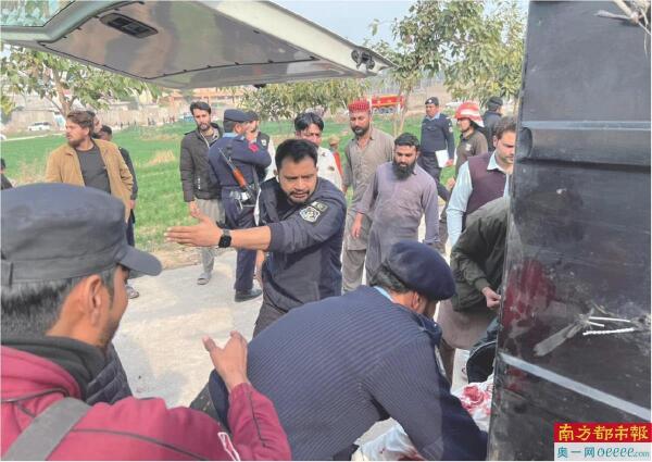 2月6日,在巴基斯坦首都伊斯兰堡,警察将伤者送往医院。 新华社发
