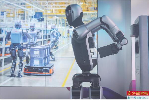 深圳优必选人形机器人Walker S2演示自主换电功能。 南方日报记者 朱洪波 摄