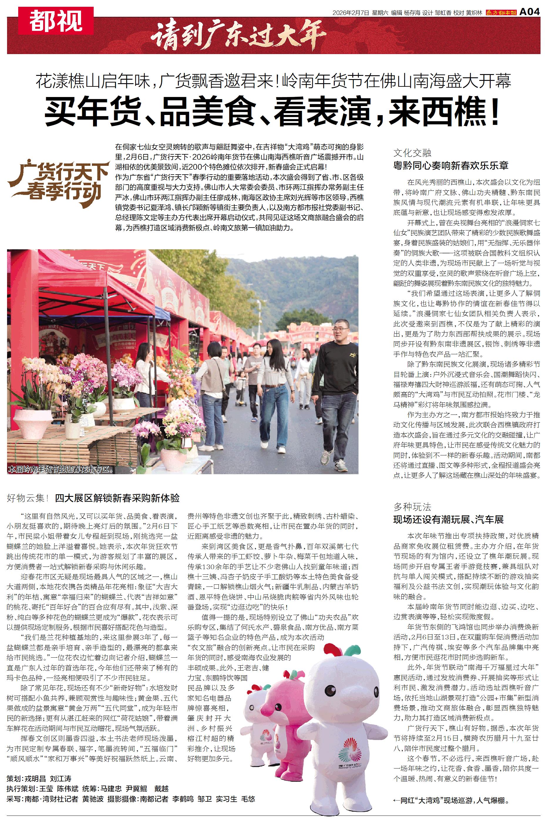 作为主办方之一,南方都市报始终致力于推动文化传播与区域发展,此次联合西樵镇政府打造本次盛会,旨在通过多元文化的交融碰撞,让广府年味更具特色,让市民在感受传统文化魅力的同时,体验到不一样的新春乐趣。活动期间,南都还将通过直播、图文等多种形式,全程报道盛会亮点,让更多人了解这场藏在樵山深处的年味盛宴。
