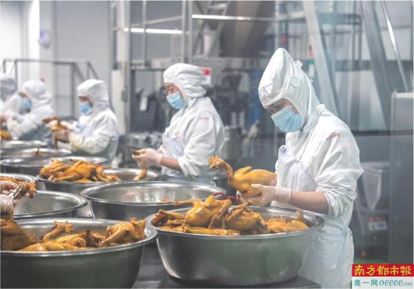 在湖南宁乡经开区一家预制菜企业生产车间,工作人员在处理食材。 新华社发