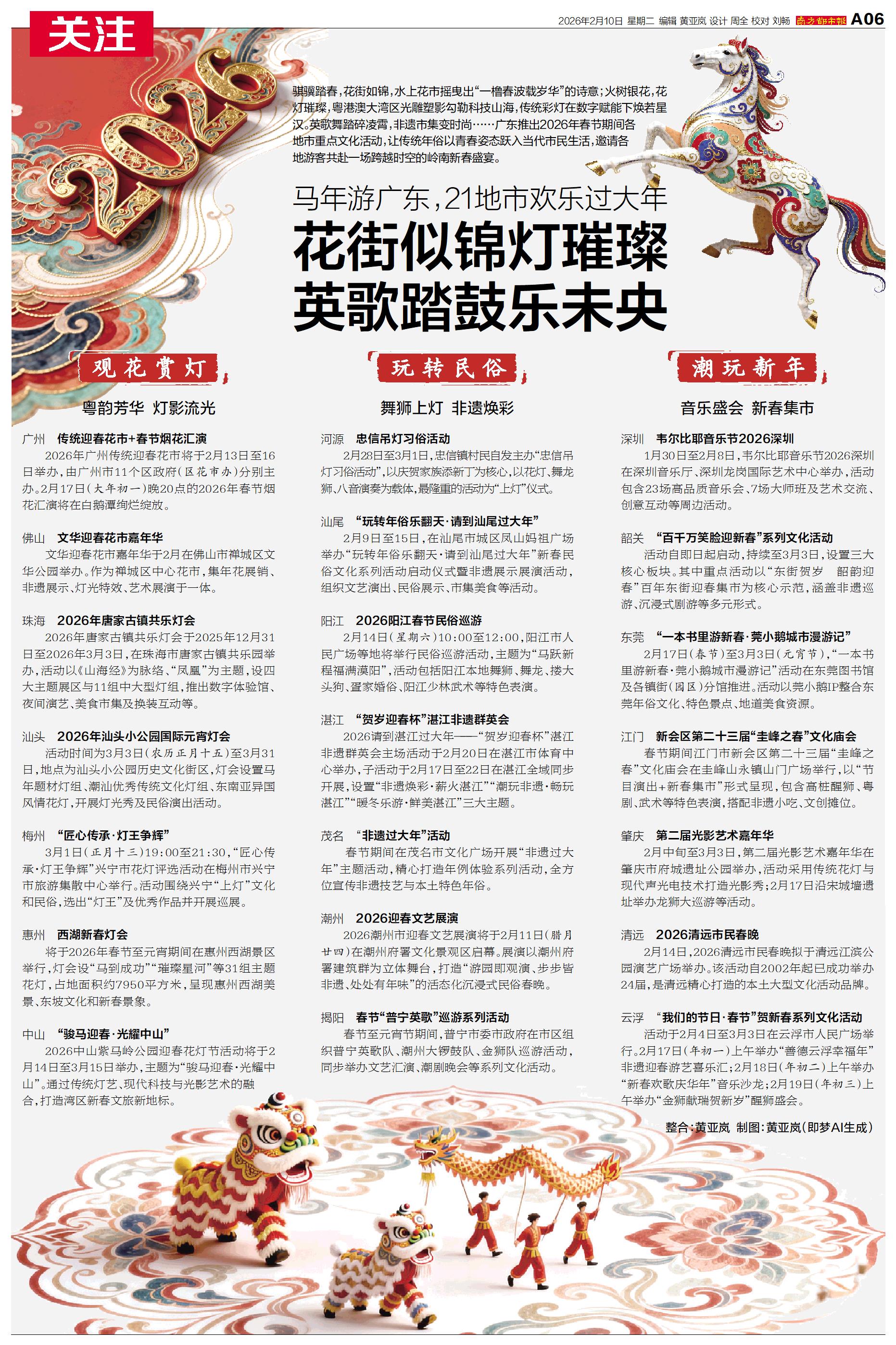 广东推出2026年春节期间各地市重点文化活动,让传统年俗以青春姿态跃入当代市民生活,邀请各地游客共赴一场跨越时空的岭南新春盛宴。