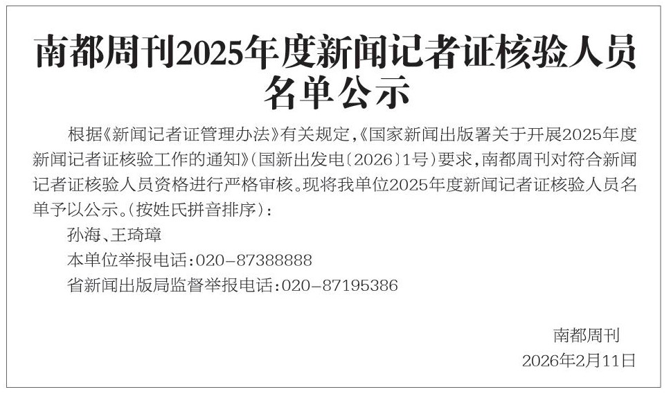 南都周刊2025年度新闻记者证核验人员名单公示