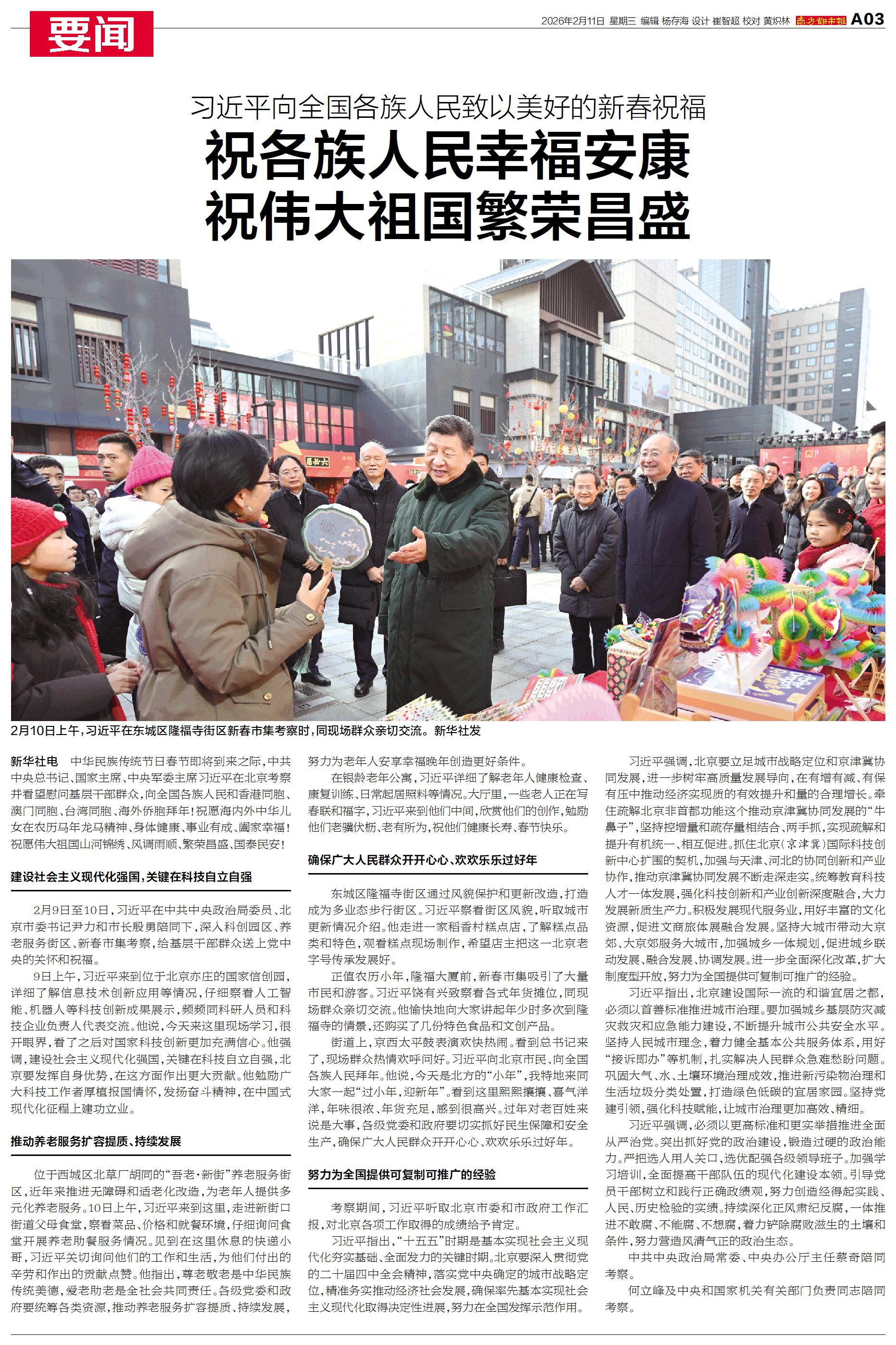 中华民族传统节日春节即将到来之际,中共中央总书记、国家主席、中央军委主席习近平在北京考察并看望慰问基层干部群众。