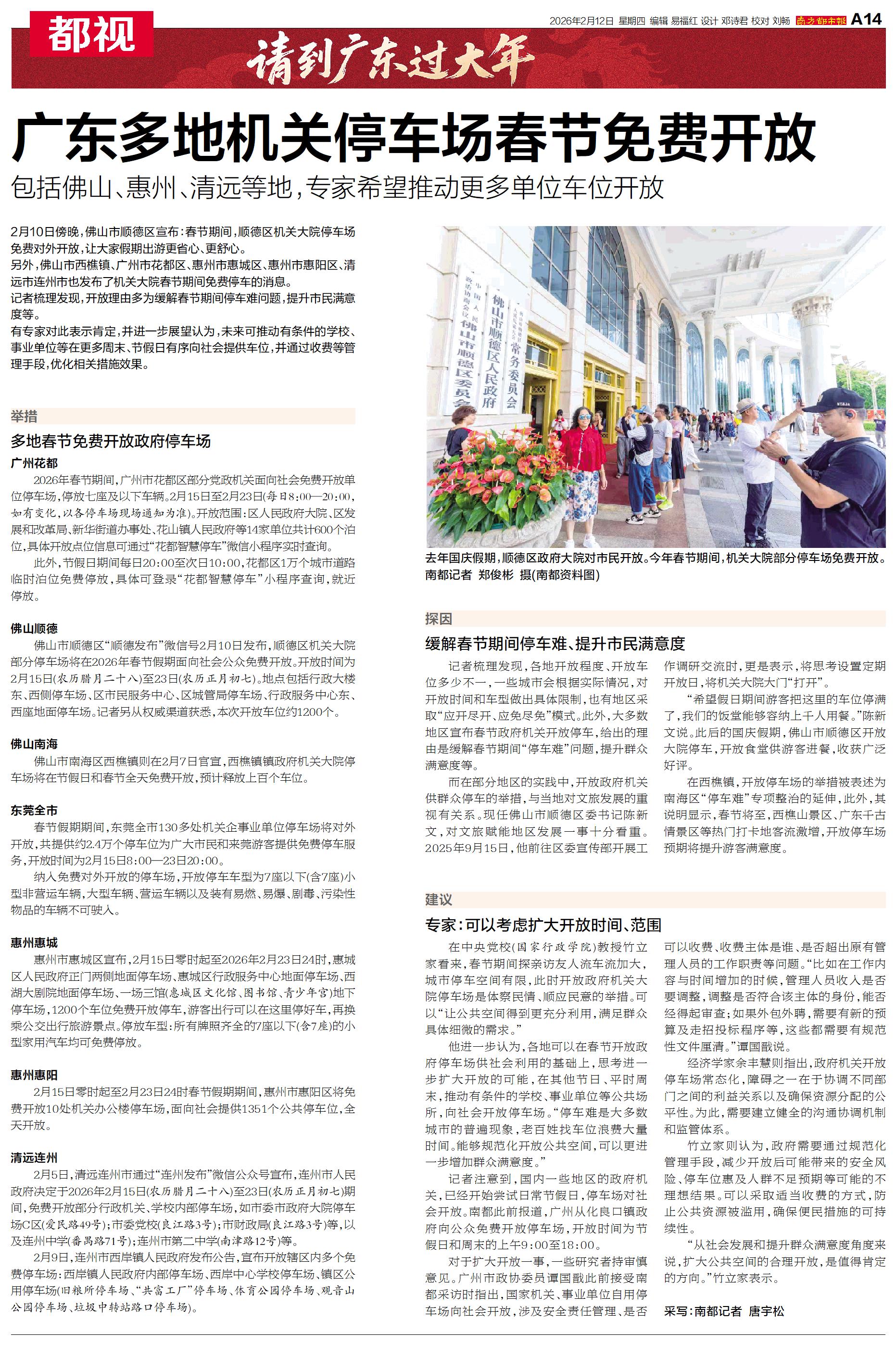 2月10日傍晚,佛山市顺德区宣布:春节期间,顺德区机关大院停车场免费对外开放,让大家假期出游更省心、更舒心。