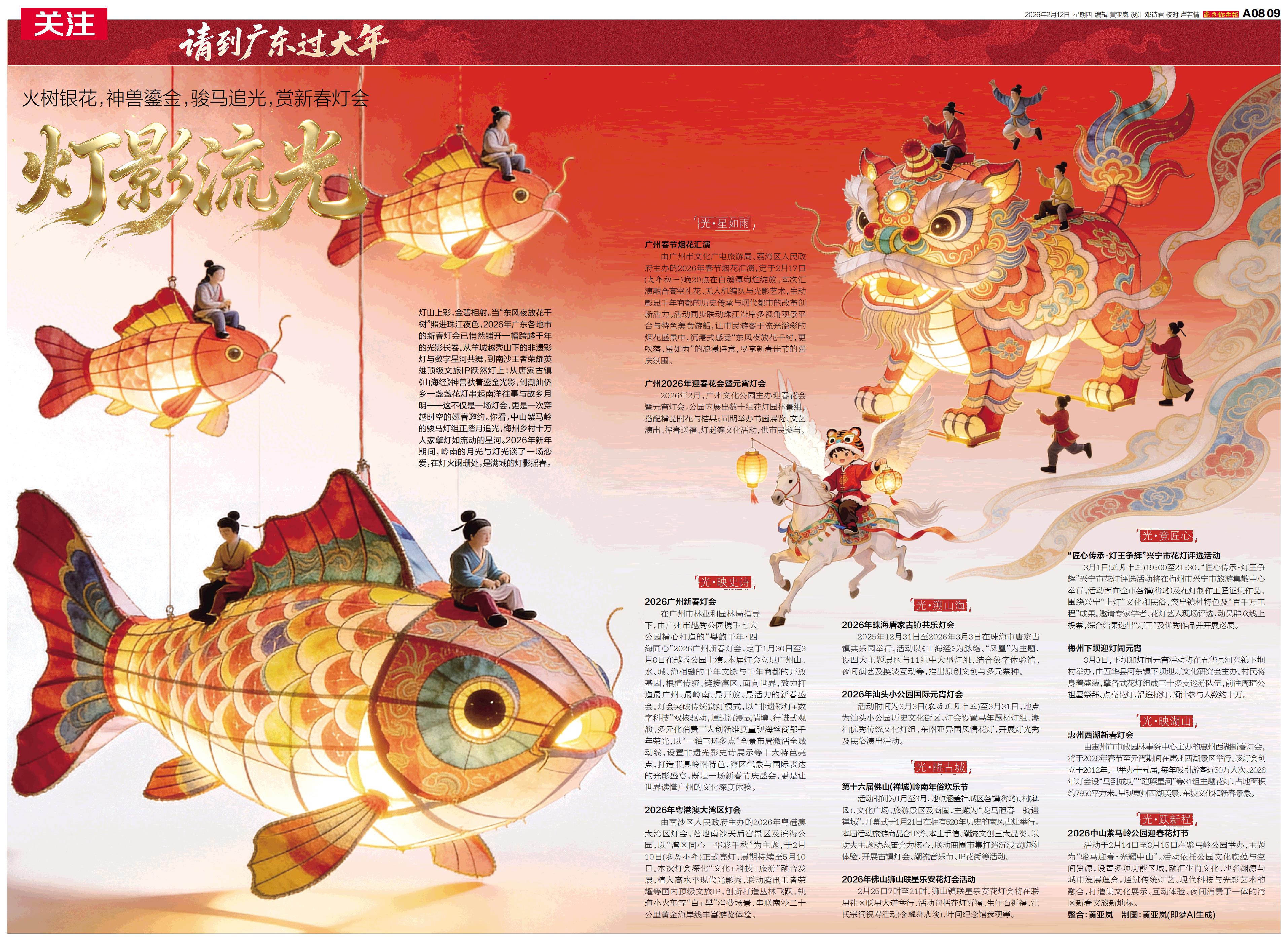 你看,中山紫马岭的骏马灯组正踏月追光,梅州乡村十万人家擎灯如流动的星河。2026年新年期间,岭南的月光与灯光谈了一场恋爱,在灯火阑珊处,是满城的灯影摇春。